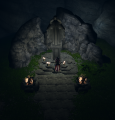 шекелейкопеек. Во-первых, было бы неплохо добавить дым от жаровень. В карте refuge in ruins от Огра есть хорошие источники тумана и дыма.И ещё плитка мне не понравилась. Форма какая-то странная, образующая дырки в ровном пол, а пъедестал вообще похож на невнятную кучу. И при этом постоянно повторяется одна и та же текстура - хоть бы повернул разные плиты на 90 и 180 градусов. В общем, плитка из top down fantasy смотрелась намного привлекательнее.