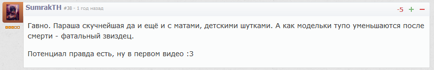 Окей, может я резок, но это полностью отражает мое разочарование от того, что ты делаешь колоссальную работу, не представляю, сколько времени у тебя уходит на левел-дизайн, сюжет, подбор и редактирование моделей. И это круто. Но тут проблема в том, что даже если у тебя все ранее перечисленные вещи на должном уровне, то эта озвучка просто ставит крест на твоих работах для обычных обывателей, типа меня. Ценители и фанаты, быть может, привыкли и превозмогая себя закроют на это глаза, но я не могу, хоть убей. Я просто включаю, идёт музыка, идёт визуал, смотрибельно, и тут эта озвучка и всё, минус уши, я просто прокликиваю видео, чтобы понять, везде ли она такая и выключаю.
