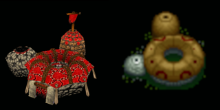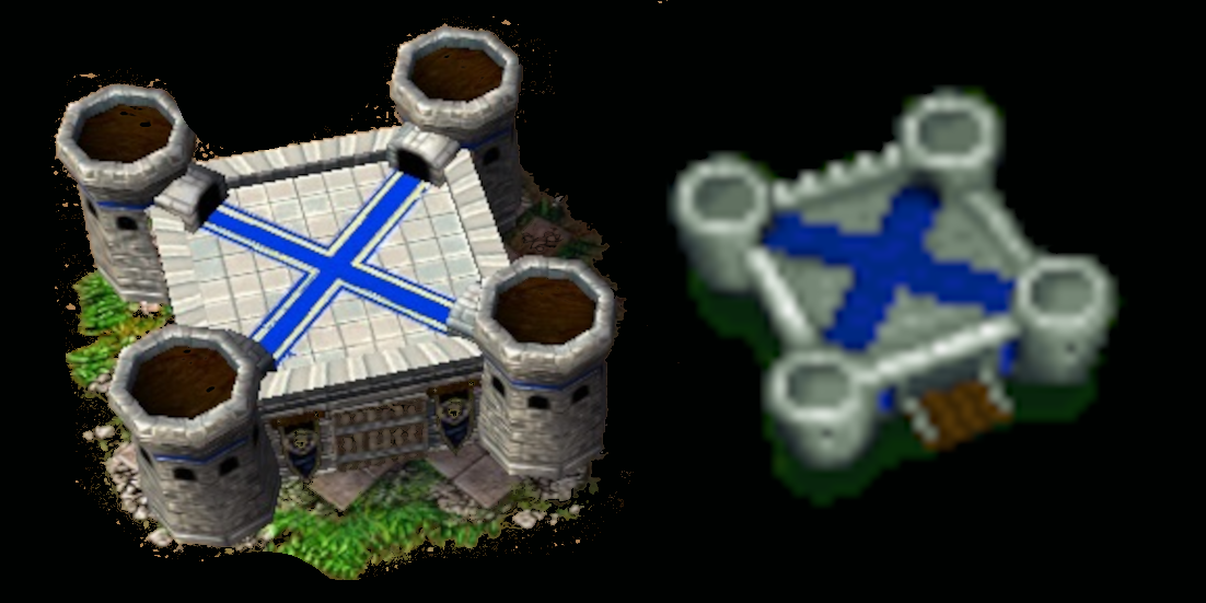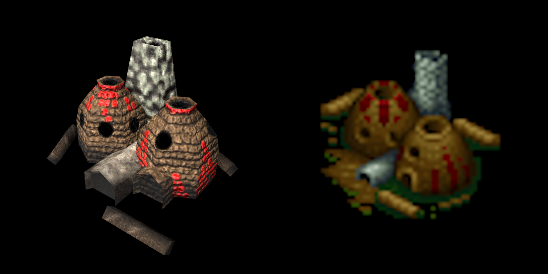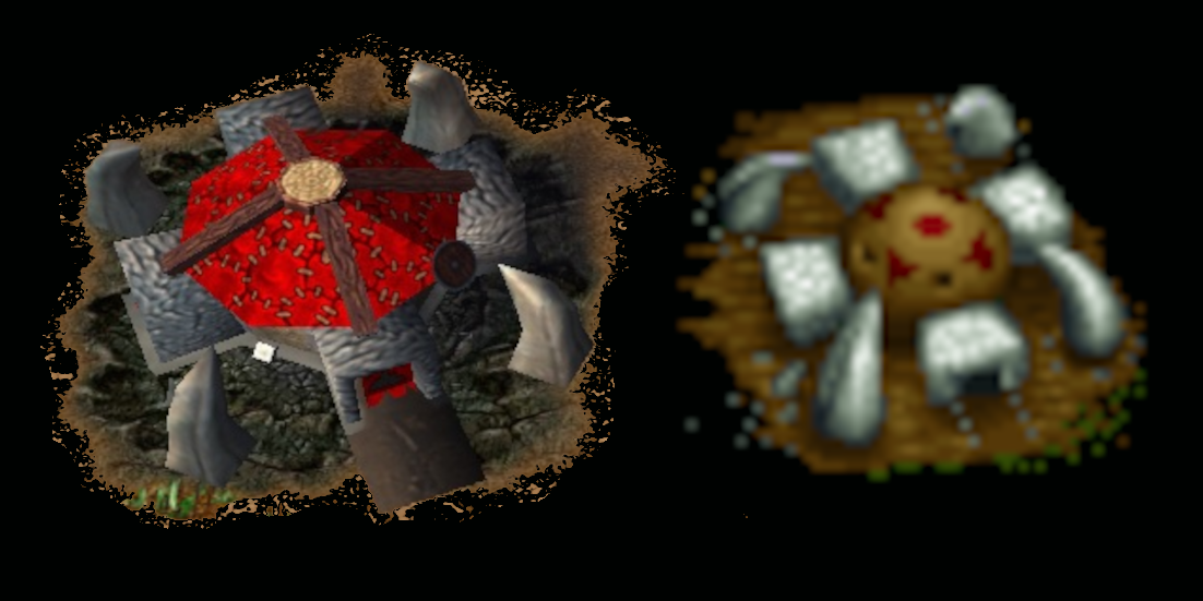 Есть комментарий по моделькам зданий. Постройки людей выполнены прекрасно и в соответствии с каноном, а вот орковские ему не отвечают. На самом деле, здания орков в Warcraft I строились из глины, по "дренорским технологиям". Модельки соответствующих зала вождей и фермы есть Запределье в Оплоте Громоборцев.