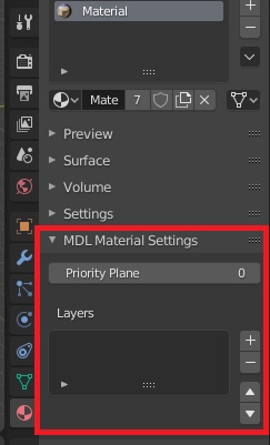 Создаём 6 блендеровских материалов и во вкладке настройки ищем MDL material.