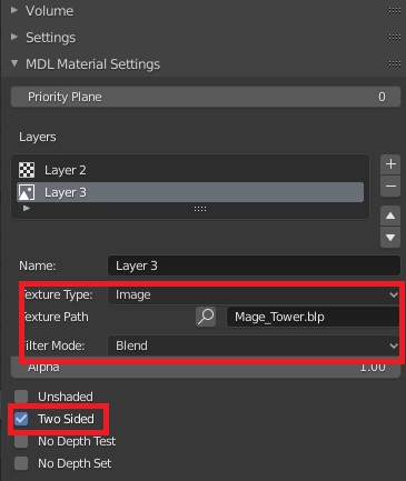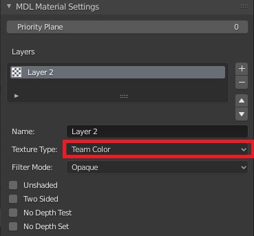 В материале тимкалороа - верхнему слою ставим значение TeamColor. При экспорте плагин автоматически запихнёт Replaceable ID1. А нижнему слою ставим режим смешивания blend и двухсторонний рендер (так же двухсторонний рендер я включил для основной башни, но уже позже).