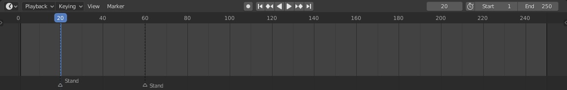 Плагин работает по следующему принципу: Так как в варкрафте все анимации упиханы в один таймлайн - для определения границ анимаций используются маркеры. Для создания маркера - воставьте курсор таймлайна в место где начинается анимация и нажмите "M" на клавиатуре, после чего подведите курсор к стрелочке маркера и нажмите ctrl+m чтобы изменить название. Названия ставим в варкрафтовском формате. После чего копируете маркер и перемещаете его в конец вашей анимации. Должно получиться так: