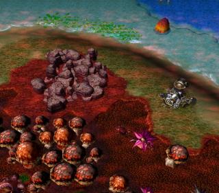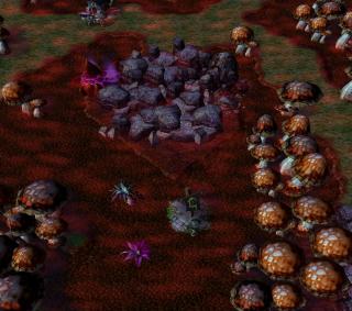 Остров гномов - вместо деревьев грибы, вместо травы каменистая почва, много камней.