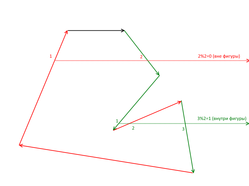 На самом деле, можно было не страдать фигней и пулять произвольным лучом в этот многоугольник, считать его число пересечений с гранями, и брать любую точку меджду первым и вторым пересечением.