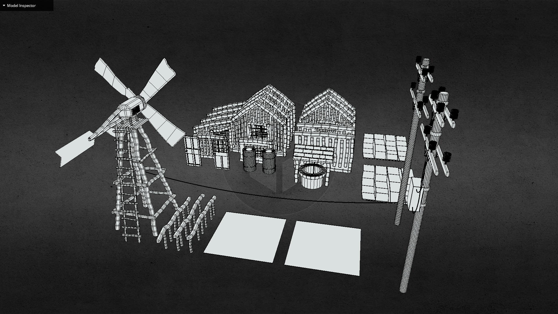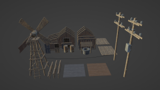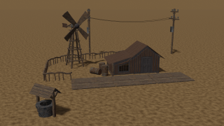 Набор модульных моделей (стены, двери, напольные покрытия, кровля, доп. декорации) для составления сооружений, которые хорошо впишутся в антураж вестерна, западной деревни, расположенной в пустоши/пустыне.