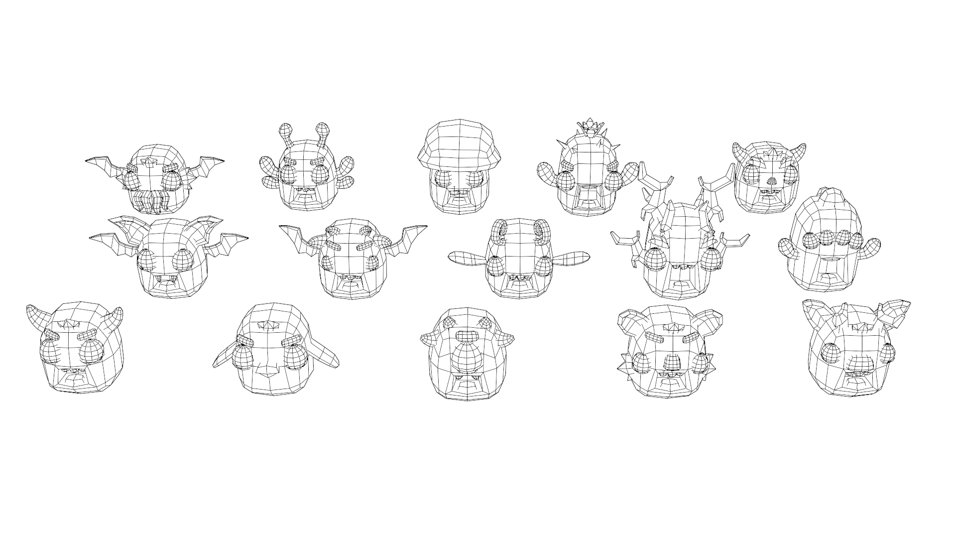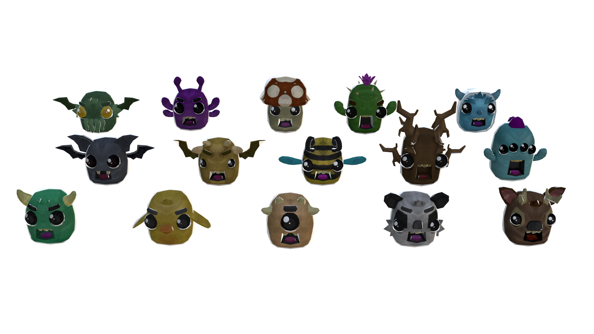 Набор из 21 модели монстров. Существа имеют карикатурно-умилительный вид. Каждая модель обладает собственной текстурой и набором анимаций: атака, гибель, состояние покоя, танец, получение урона, ходьба, прыжок, анимации "да" и "нет".