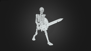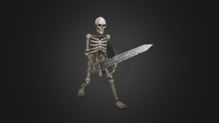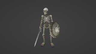 Low-poly модель типичнейшего представителя фентезийной расы Нежить. Скелет с поношенными мечом и щитом. В модели присутствует риг для добавления собственных анимаций, а также имеется комплект своих собственных.