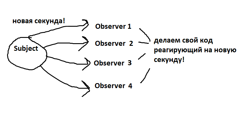 В чем суть паттерна? В том что один объект сигнализирует всем остальным связанным с собой сделать какое-то действие. Также в процессе своей жизни он может рвать связи с объектами, или создавать новые. Допустим, в игре будет только один глобальный таймер, который каждый свой тик будет говорить всем другим объектам, работающим со временем, что наступила новая секунда. А они в свою очередь реализуют логику того как им реагировать на изменение времени.