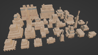 Сборка моделей низкополигональных зданий для пустынного окружения; дизайн вдохновлен вселенной звездных войн. NPR текстура. Отлично подойдет для игр с видом сверху.