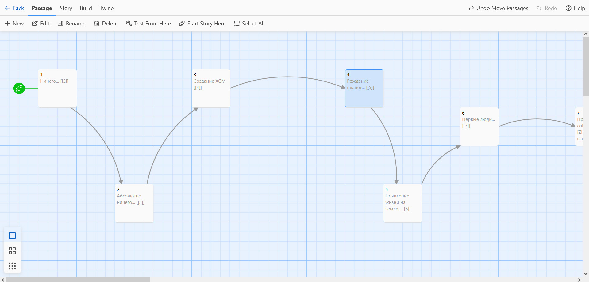 Twine - инструментарий с открытым исходным кодом для создания интерактивного повествования и нелинейных историй.