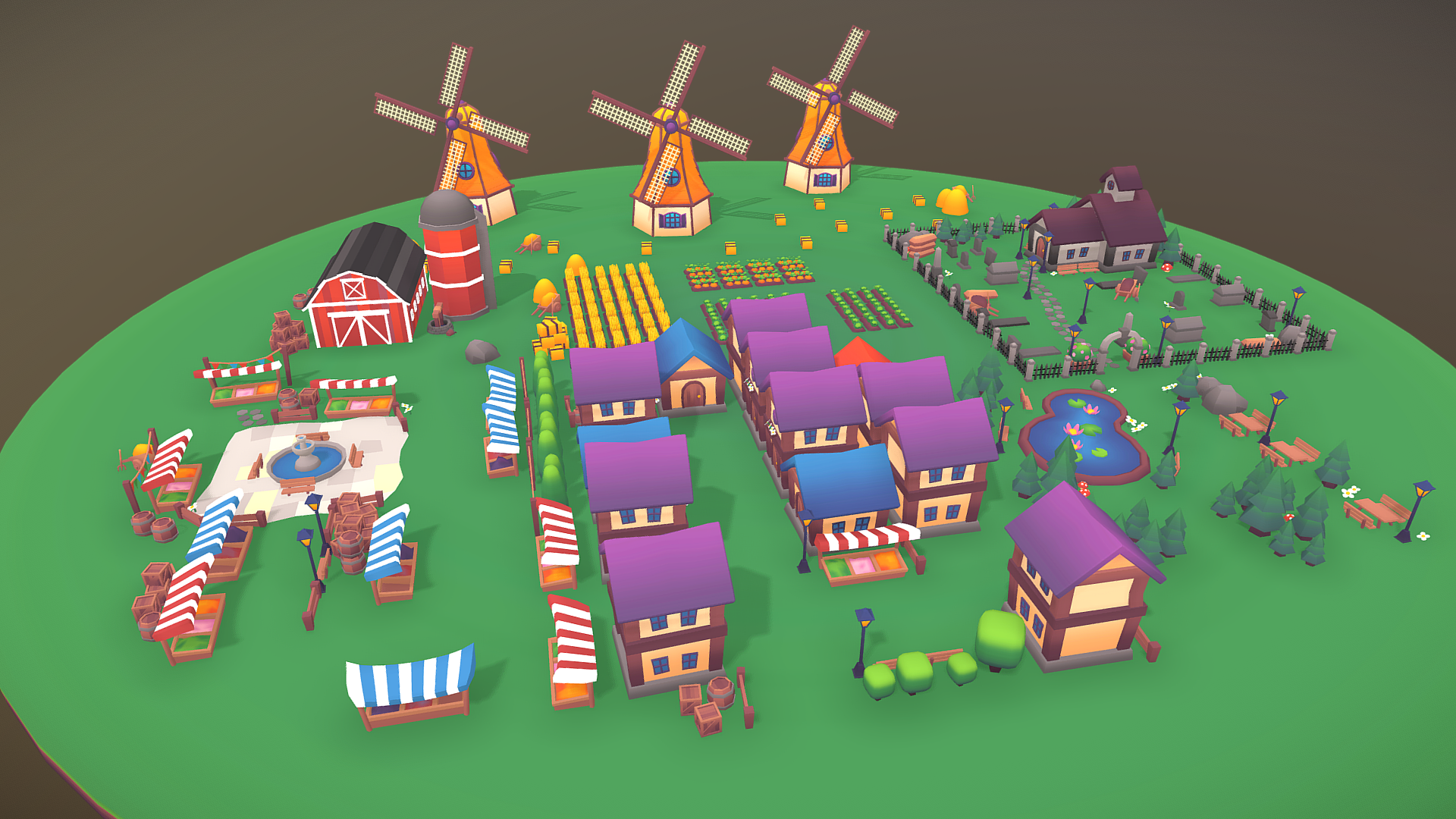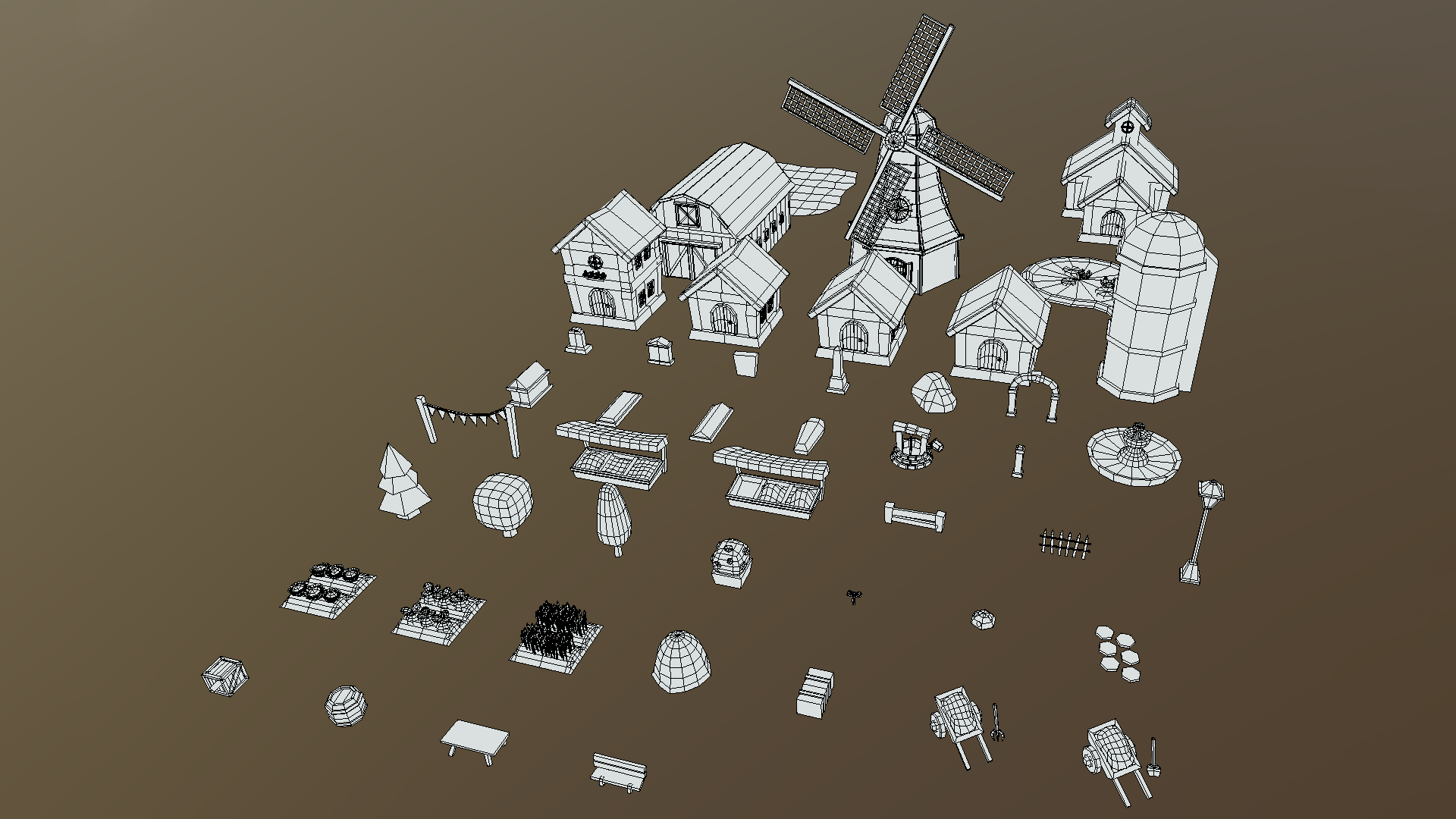 Набор моделей для создания окружения пригорода/города/деревни/ярмарки. Все модели расположены отдельно для удобства использования. Бонусом прилагается две локации с использованием моделей в составе набора.