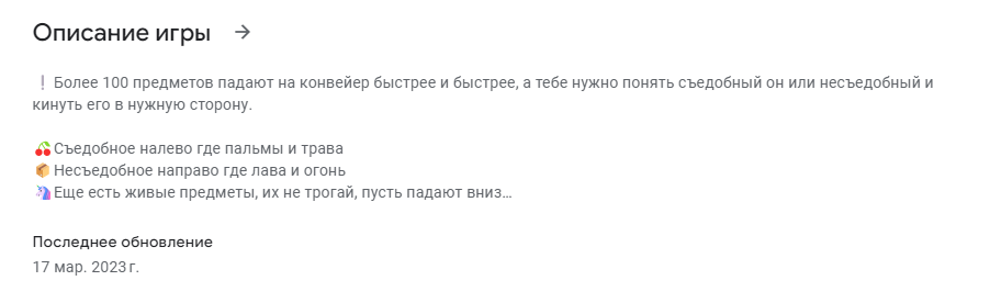 В общем, игра довольна простая, свайпайте влево всё съедобное, вправо несъедобное, а то что живое не трогайте, пусть падает вниз. Вот и все механики. За угадывание получаете очко, за промах в очко минус жизнь. Всего 4 жизни. Со временем скорость растёт, поэтому даже 100 очков наберёт не каждый, а до 200 дойдёт только азиат.