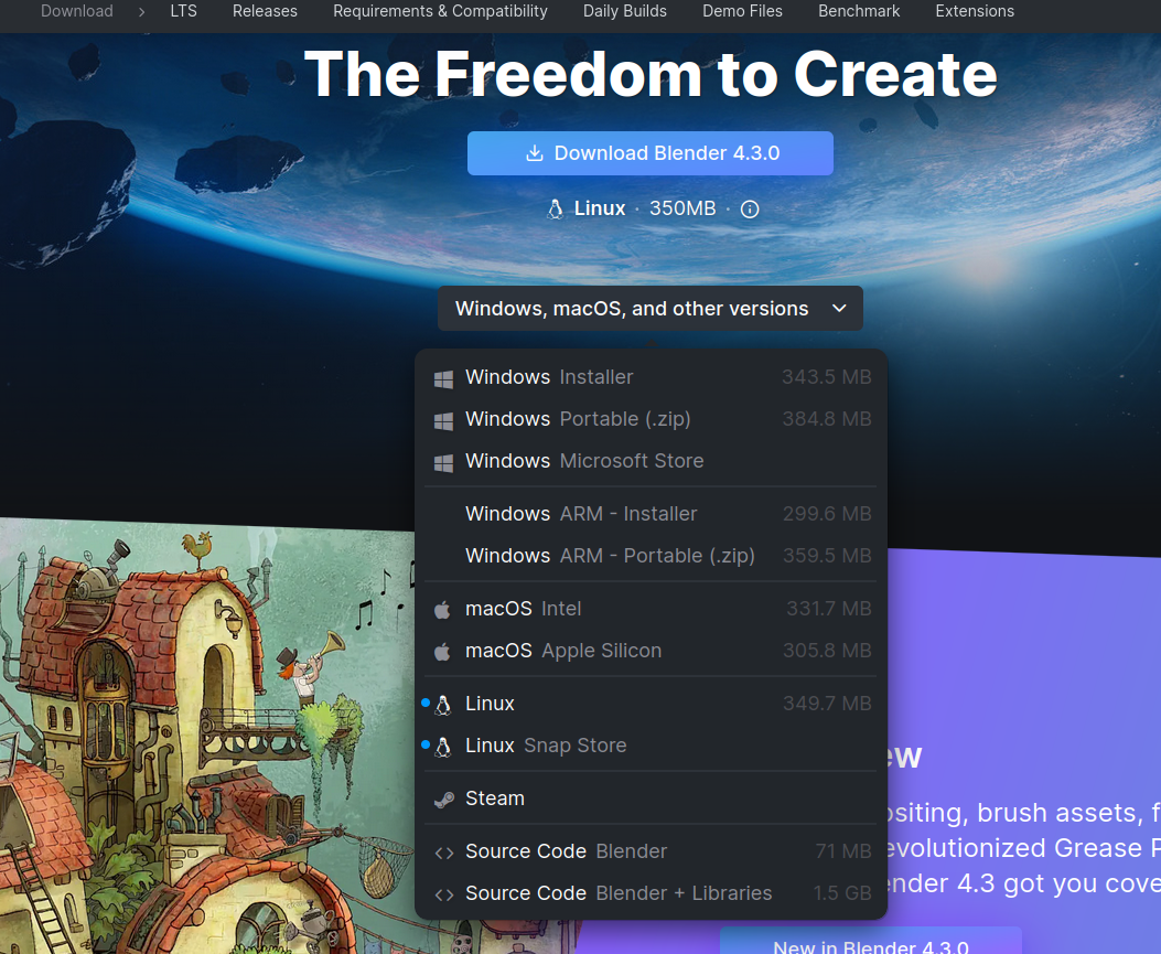 Готовые сборки Blender 4.3 доступны для Linux, Windows и macOS.