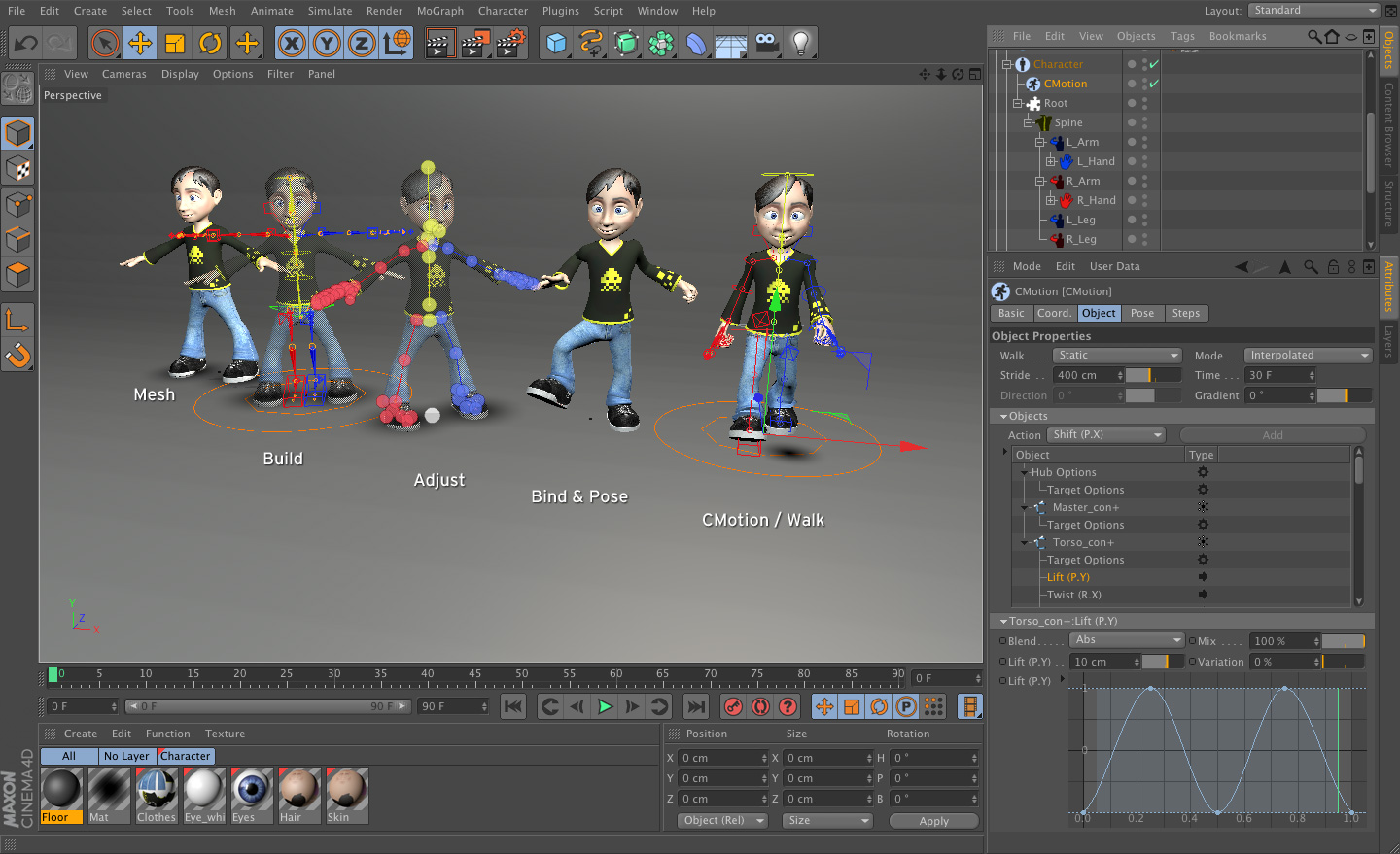 Специальные инструменты в CINEMA 4D Studio упрощают создание ригов и дополнительной анимации персонажей. Волосы или мех для персонажей можно быстро и просто добавить, используя мощный набор инструментов, который позволит вам нарастить, причесать, стилизовать и анимировать волосы. Физический движок, позволяет с легкостью реализовывать сложные столкновения и взаимодействия между объектами, независимо от того, десяток их или тысячи. Рендеринг по сети позволяет вам задействовать все компьютеры в сети, чтобы просчитать анимацию быстрее.