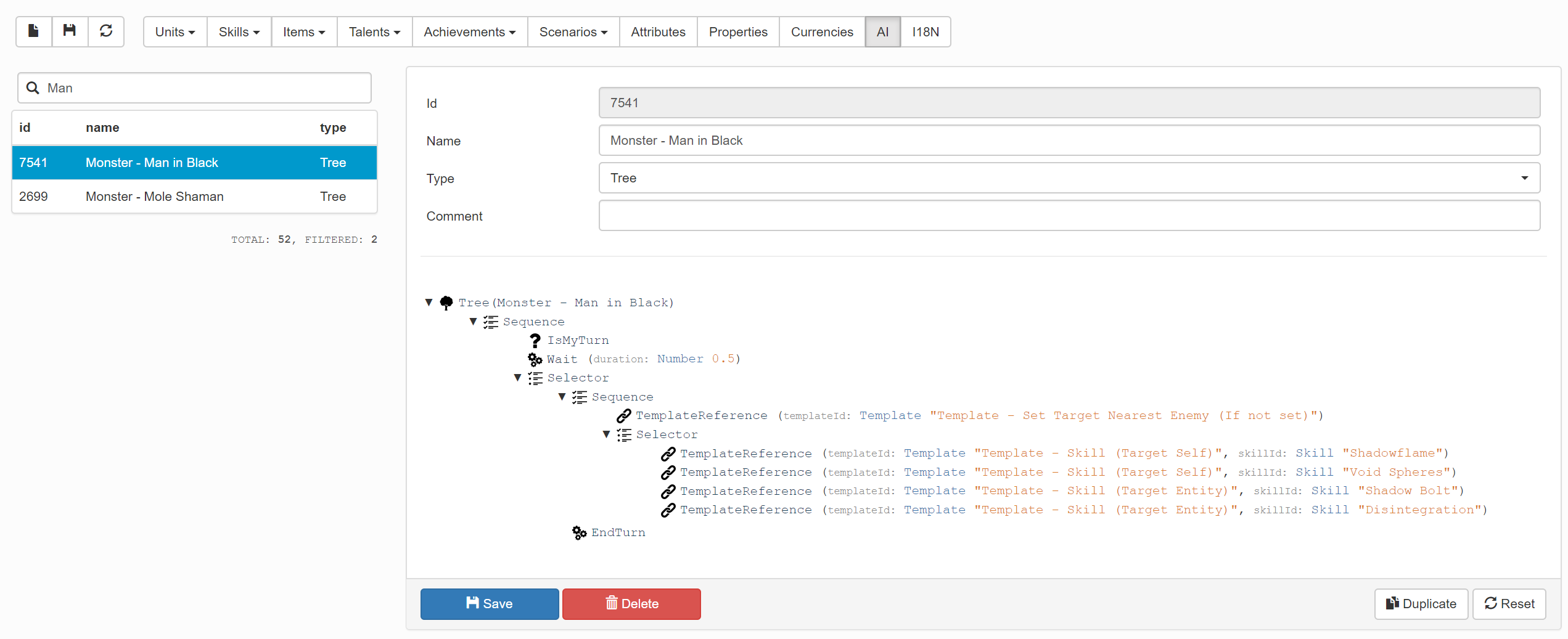 Много кода! Тысячи строк кода! Моя любимая часть разработки. В этот период я создал редактор данных и написал все необходимые системы для игры. Ранее я делился своим опытом создания навыков. Игра в этот период выглядела довольно схематично: зеленый город с помеченными черным цветом областями, а на персонаже можно увидеть красные полоски, обозначающие центр спрайта