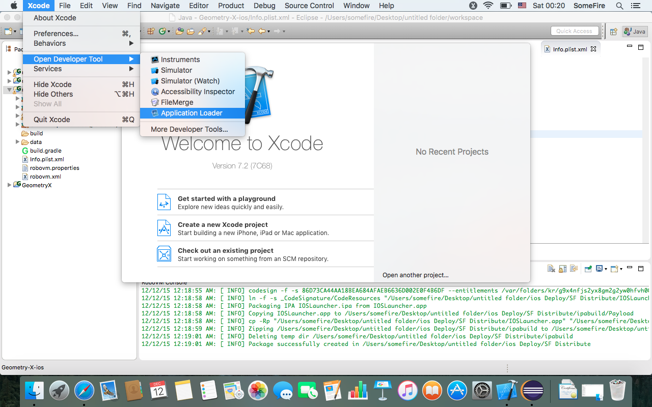 app.name=Geometry-XДля проверки работоспособности вашей игры можно использовать симулятор айпада/айфона или подключить устройство через кабель. Для этого надо нажать правой кнопкой мыши на iOS проекте и выбрать "Run as...".