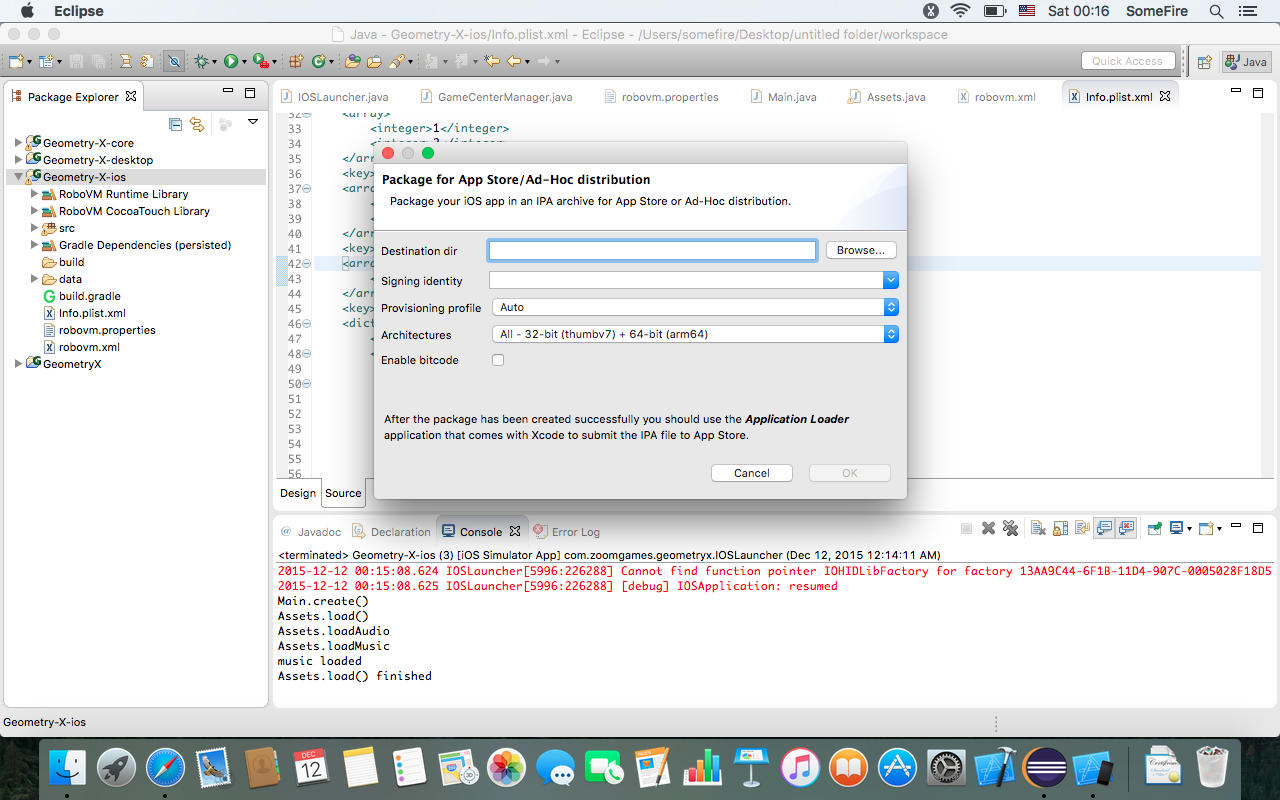 Софт готов? Аккаунты подключены? RoboVM активирована? В любом случае - переходим к компиляции iOS версии игры.