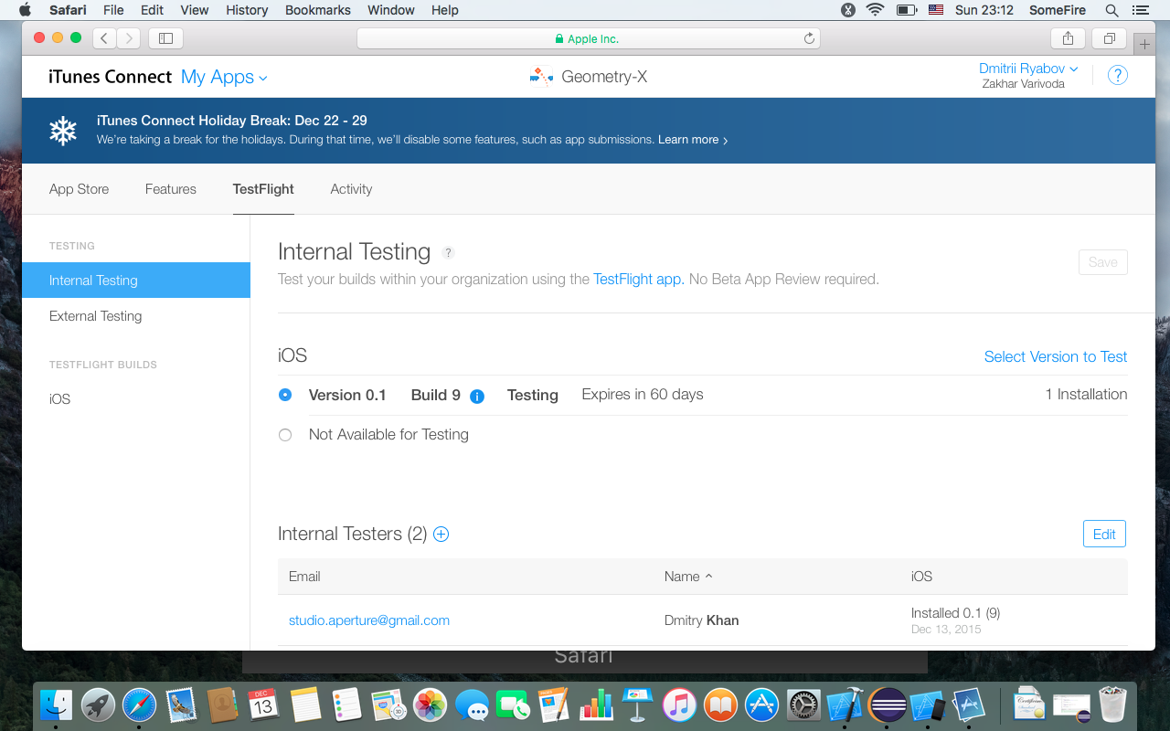 Если в вашей команде разработчиков нет яблочных устройств, то можно поспрашивать родных/друзей/знакомых и сделать их внешними тестерами. Но тут есть одна проблемка – эпл некоторое время проверяет приложение, прежде чем позволить тестерам его загрузить.