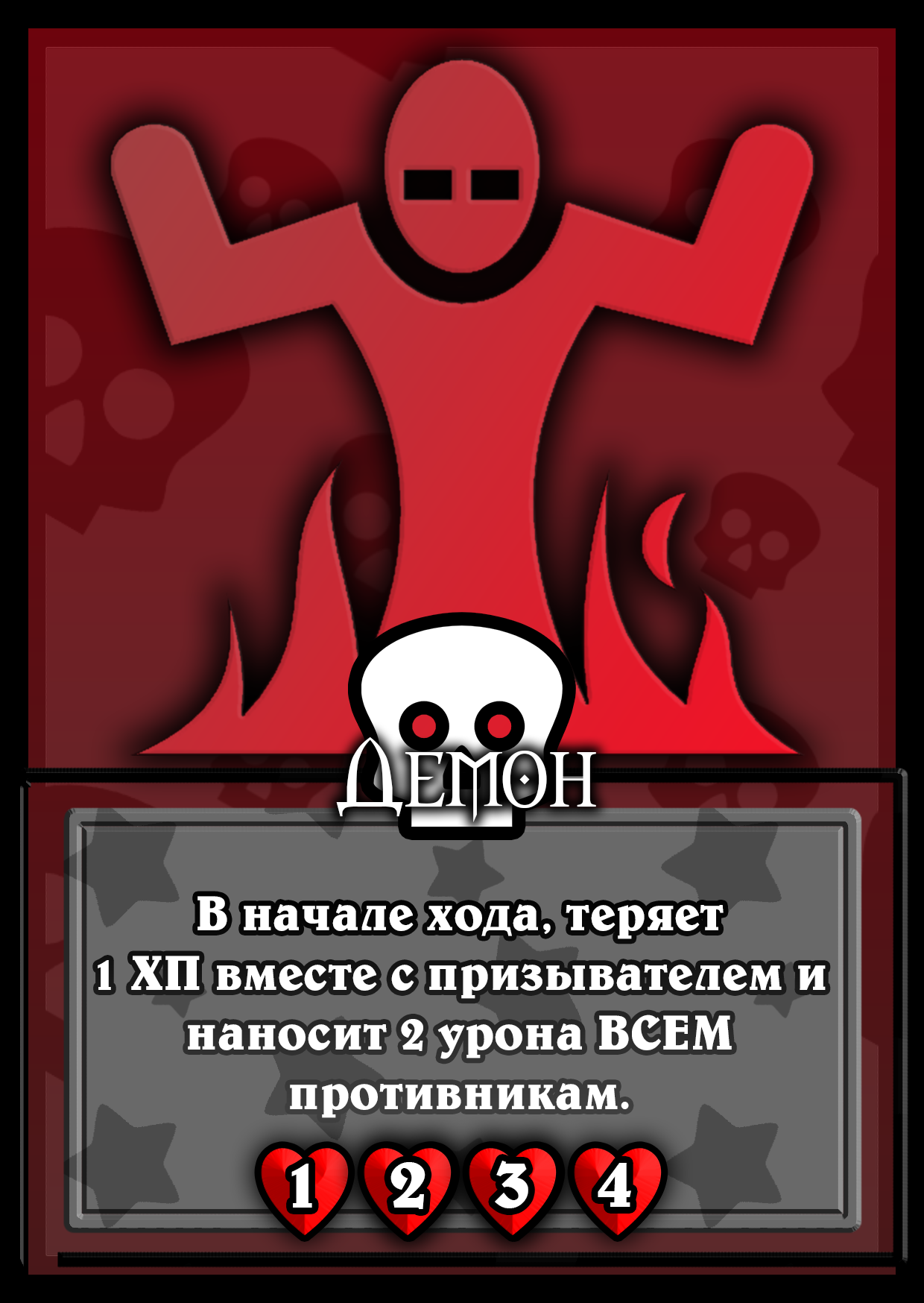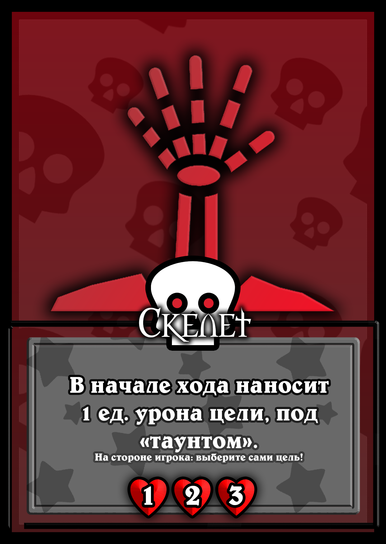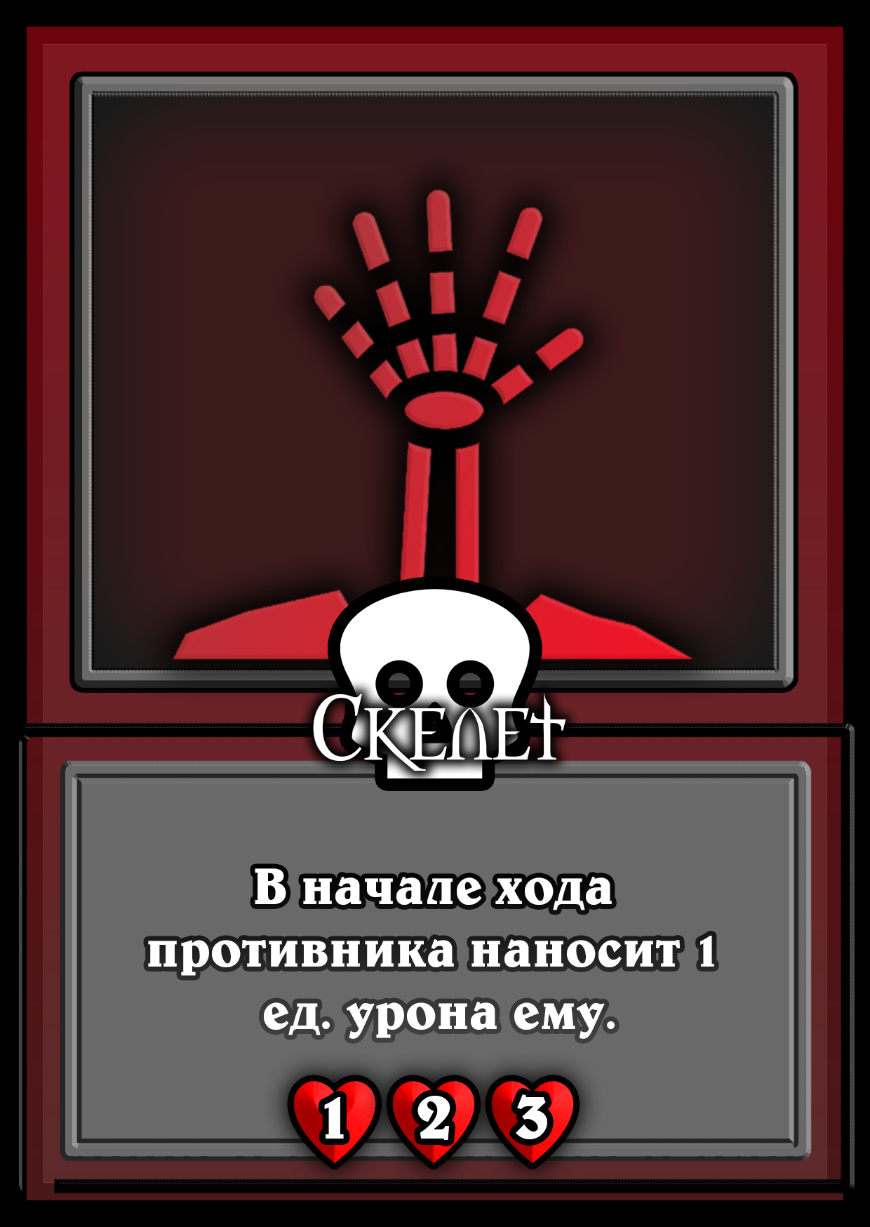 - Свои HP (например, Скелет - 3 HP, Дракон - 4).