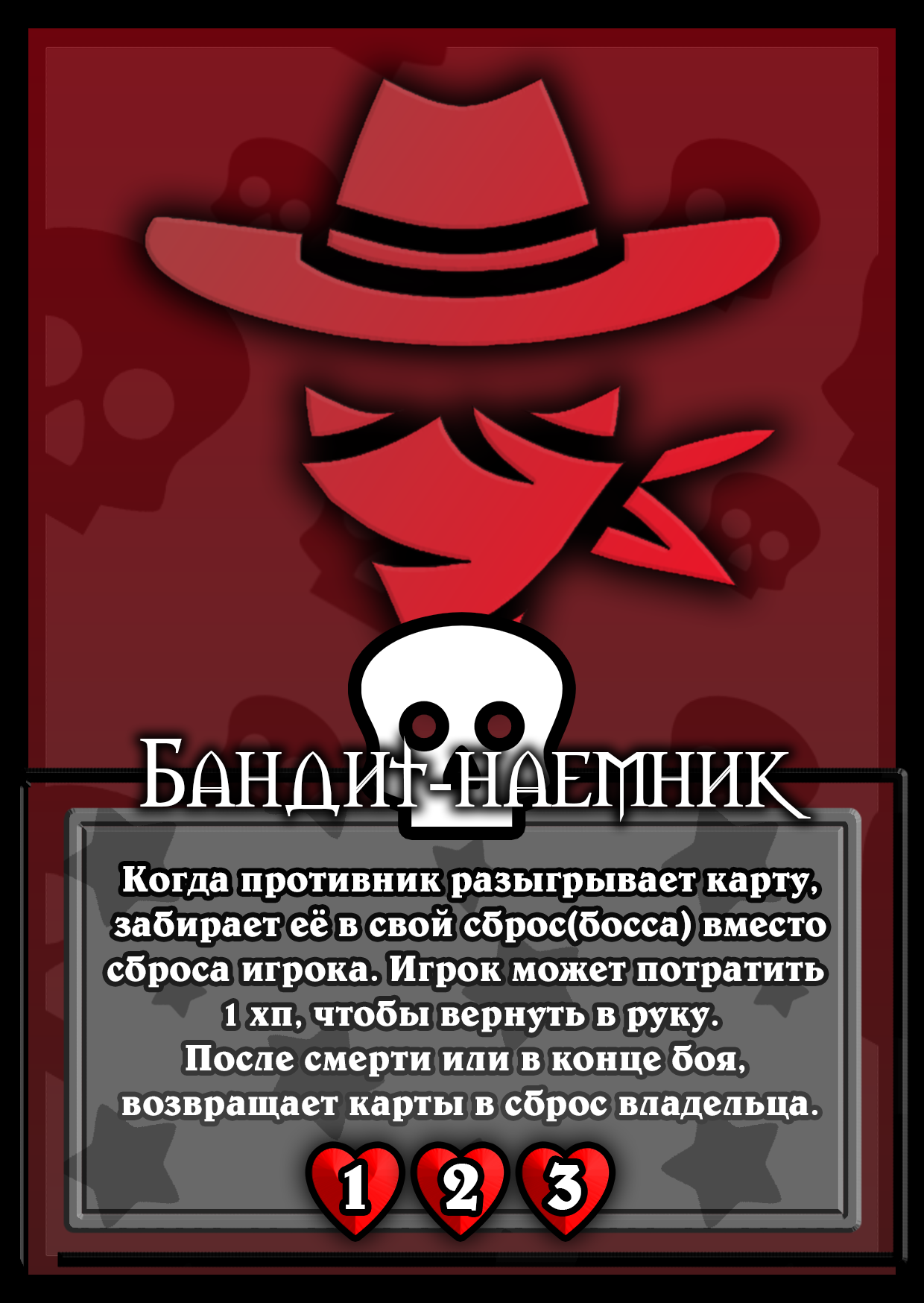 - Пассивный эффект (например, *«1 урон за карту игрока»*).