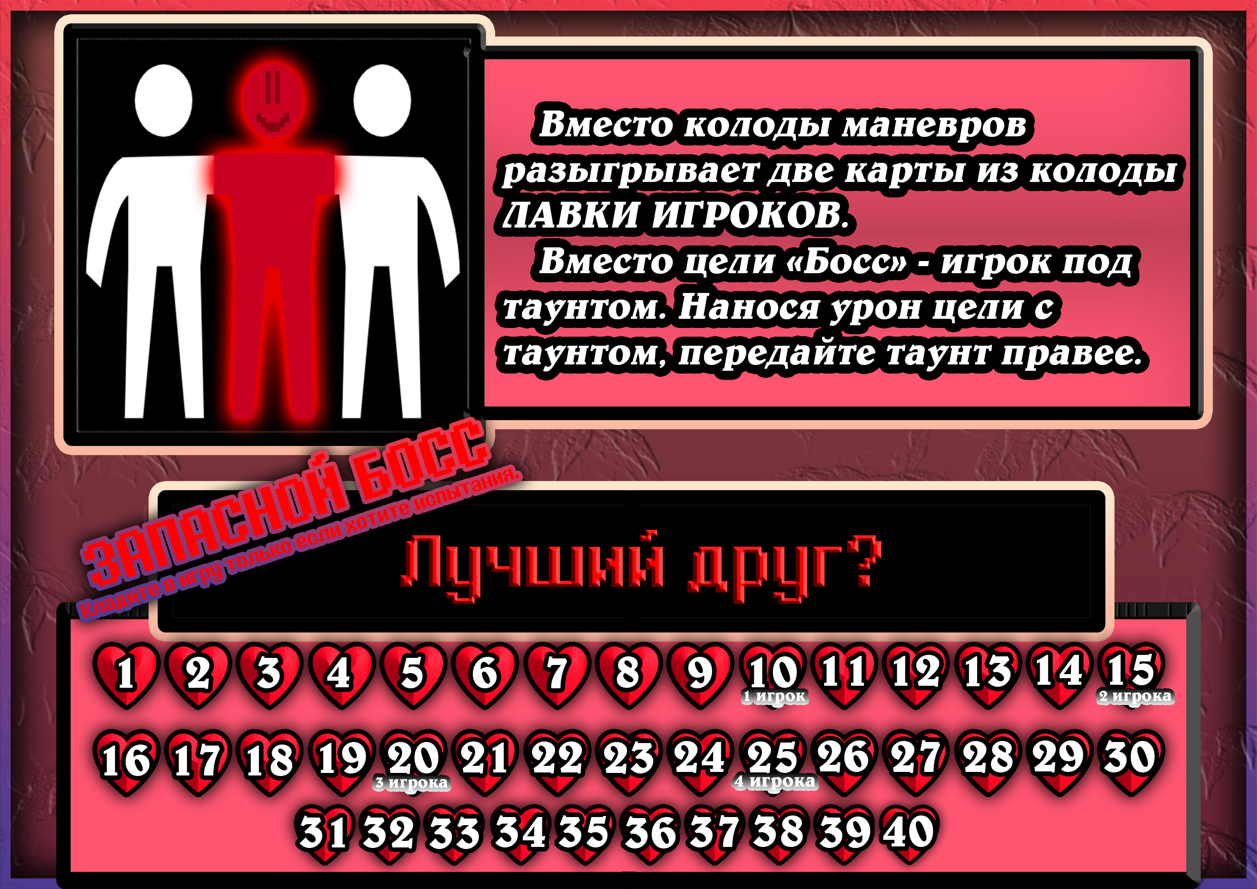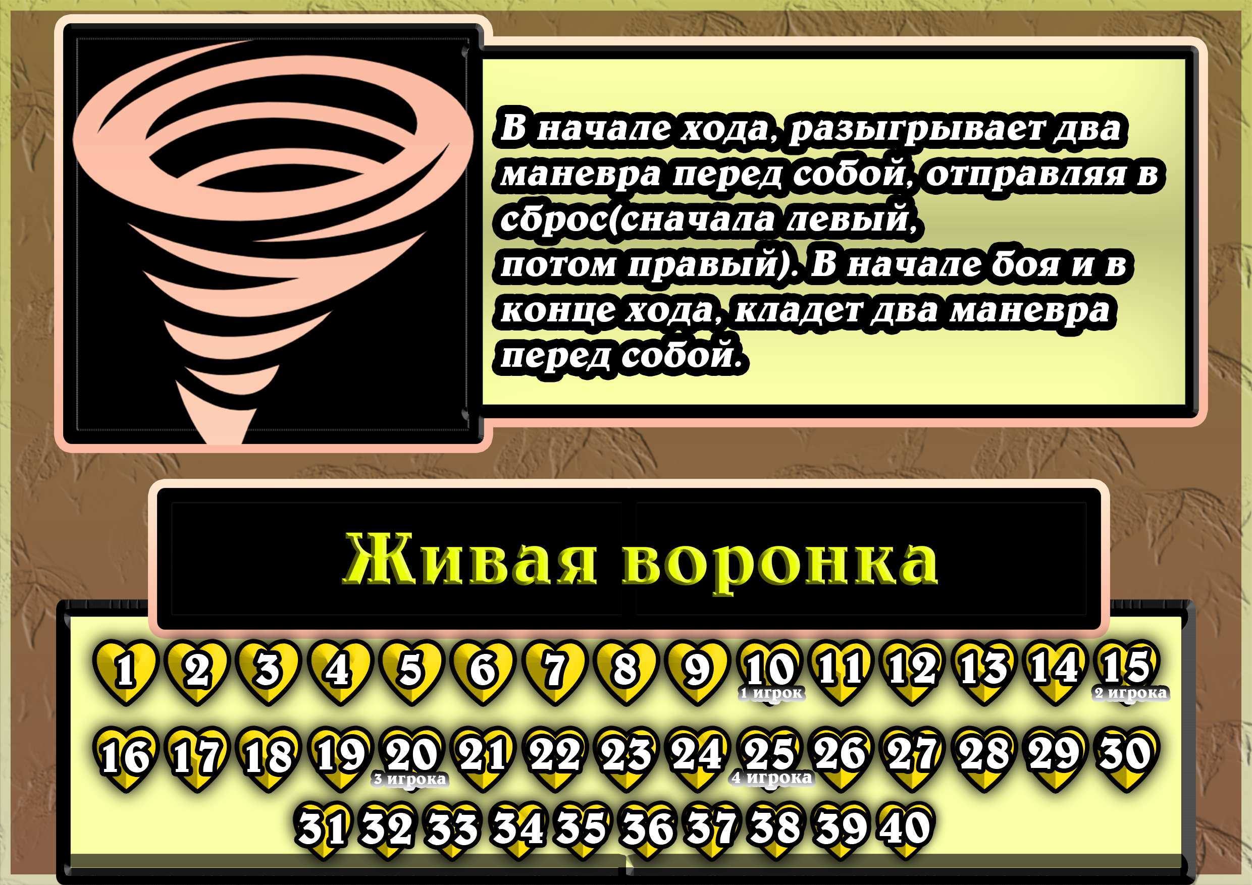 - Ход босса – разыгрывает верхнюю карту маневра.