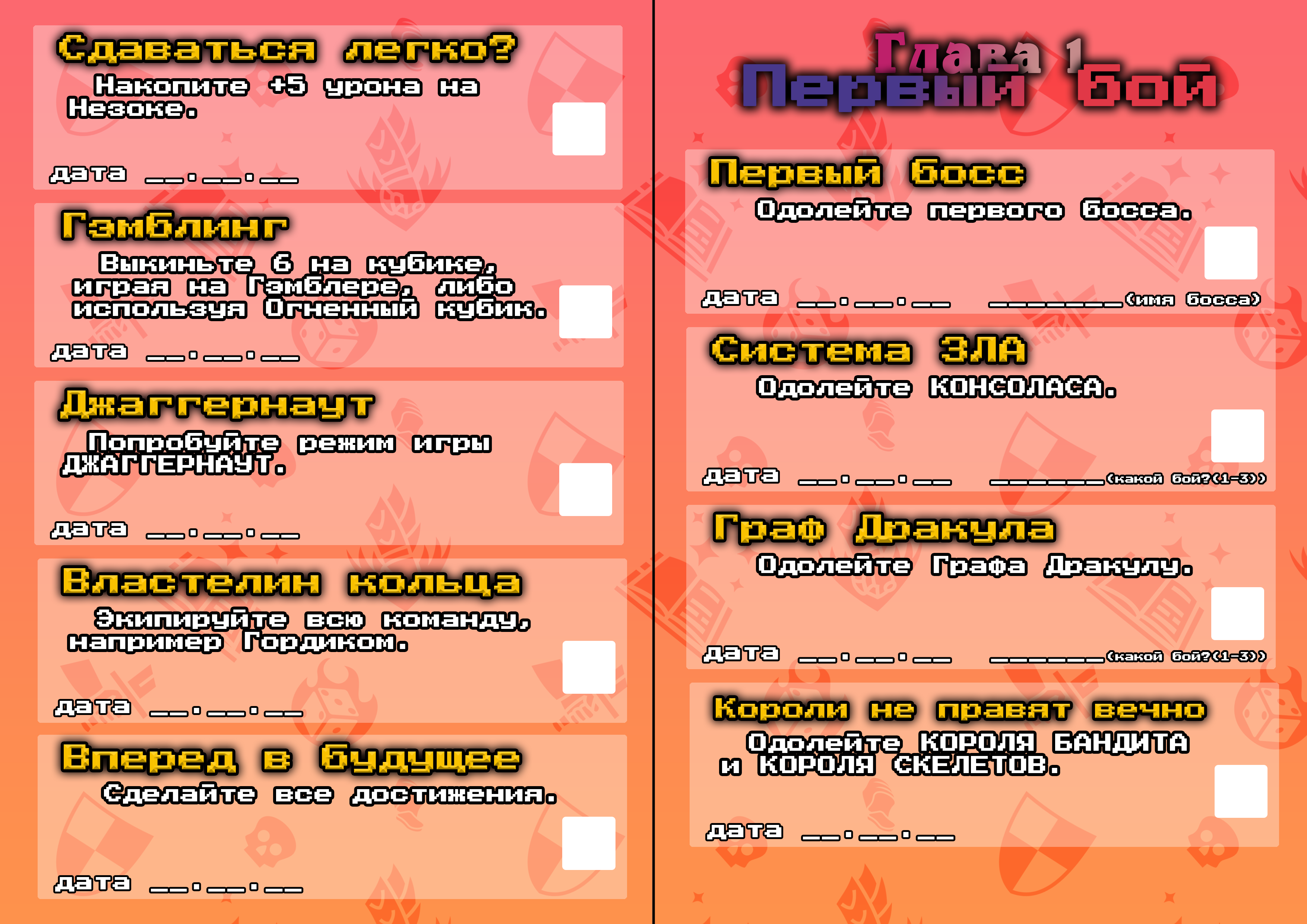 - Сделать нормальную упаковку и книжку правил, книжку достижений.