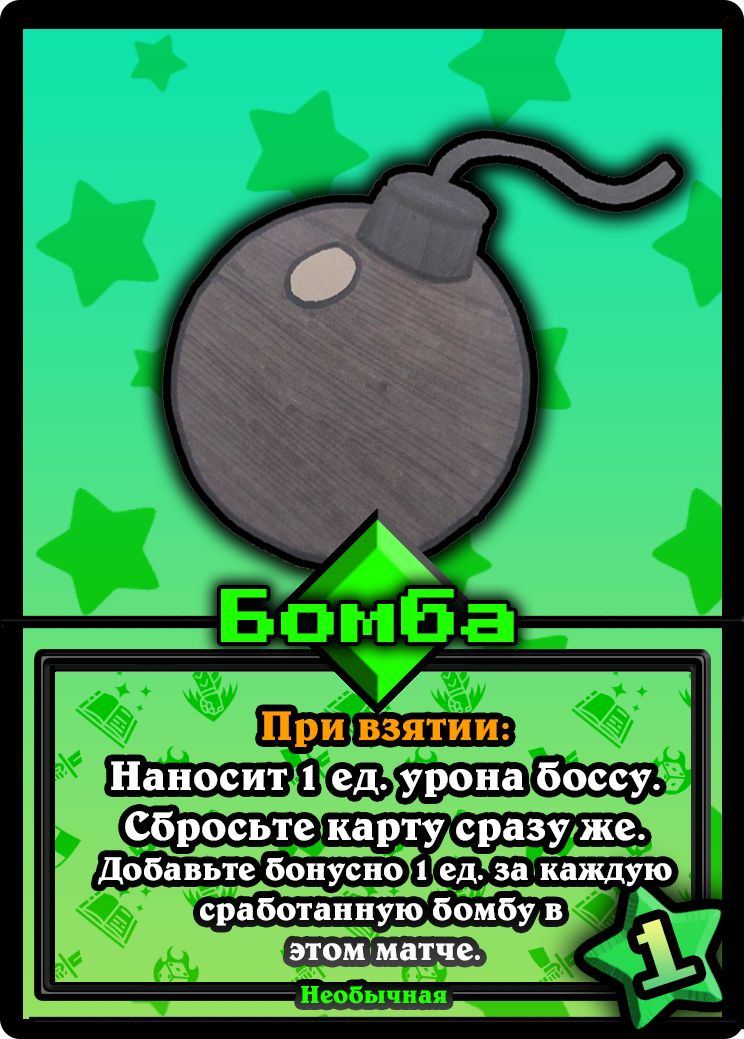 - Карты, на эффекты ПРИ ВЗЯТИИ, такие как "Бомба" и "Мотивация".