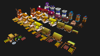 Набор из строений для сельской/деревенской местности с NPR текстурами: амбары, мельницы, палатки, сторожевые башни. Отдельные здания являются улучшенными версия предыдущих. Также есть несколько вспомогательных моделек мелких декораций.