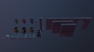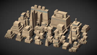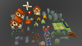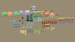 Модульный набор medium-poly для строительства среднего прибрежного городка. Все модели уже установлены на fbx-сцене как пример застройки.