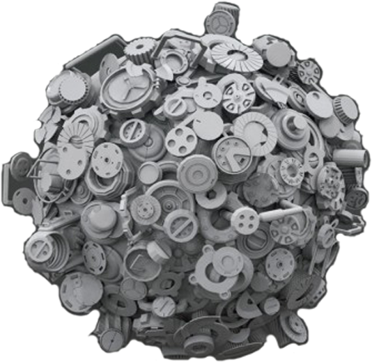 Набор шестеренок, клапанов, зажимов и кронштейнов для прототипирования механических моделей.