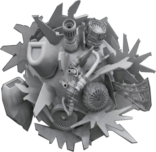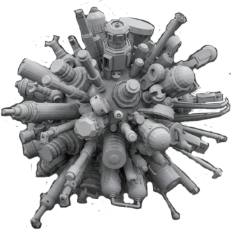 Набор крыльев, лопастей и двигателей для прототипирования механических моделей.