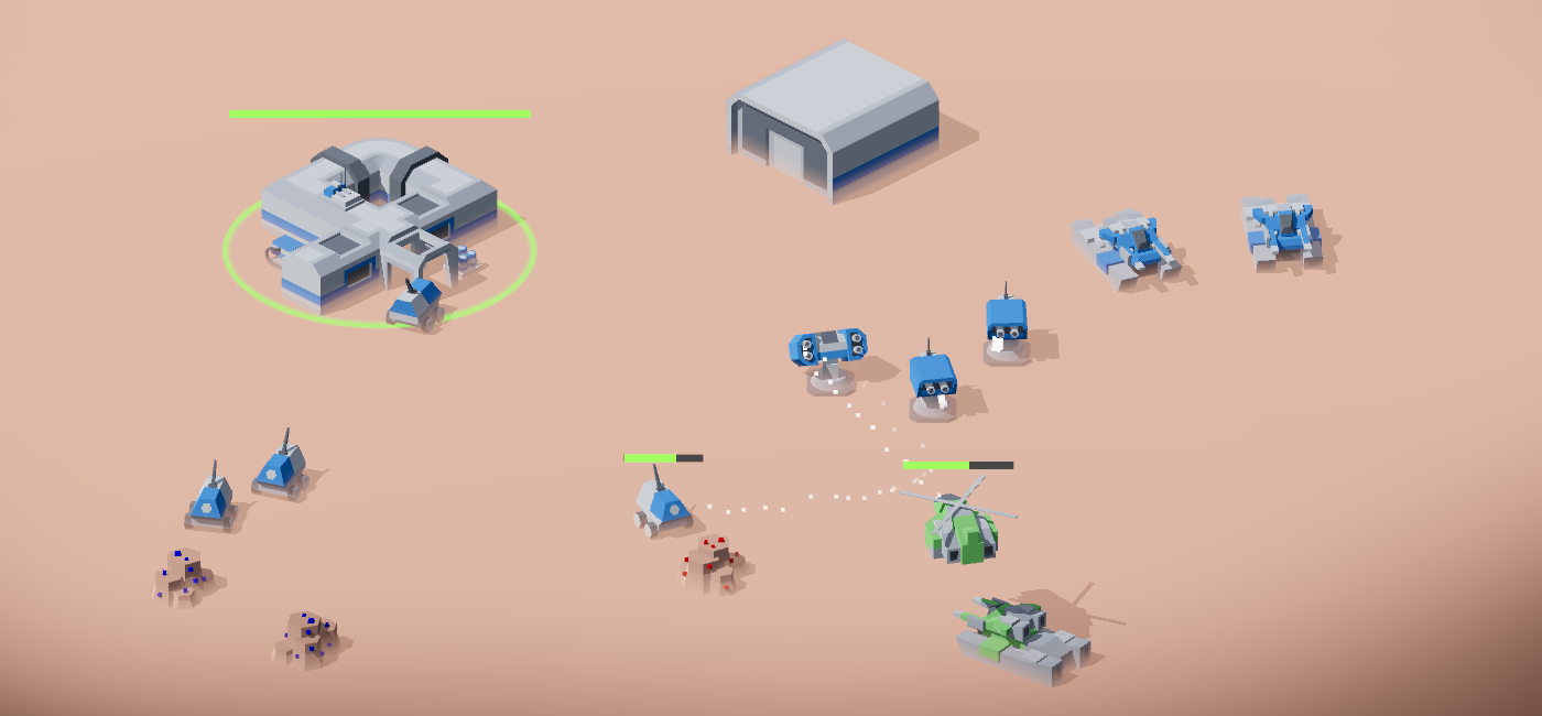 В данном ресурсе представлена наработка базового геймплея для стратегии в реальном времени, включая такие аспекты как: