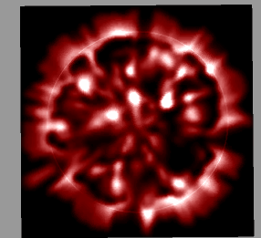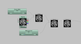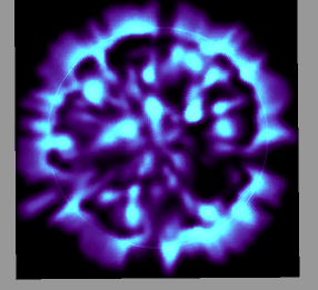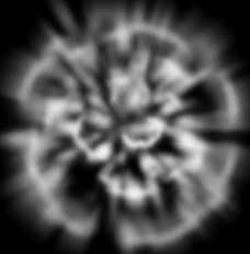 В качестве примера эффект, в котором используется подложка с нойзом свёрнутым полярными координатами, на который наложена умножением маска с узором. Вокруг движутся трейлы с паннером и вытянутой маской текстурой)