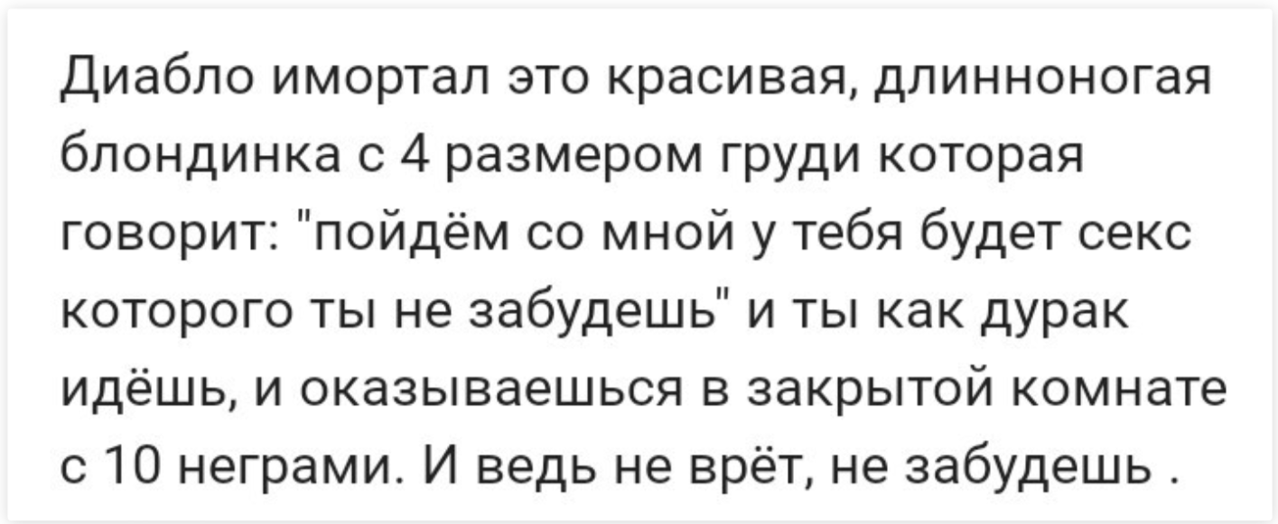 Насчет Иммортала, скажу скромное мнение чувака докачавшегося до 60(3) лвла: в игре просто нечего выдрачивать целый день. Ведь тут даже КАПЫ на ФАРМ, капы НА ФАРМ В ДИАБЛО КАРЛ!!!