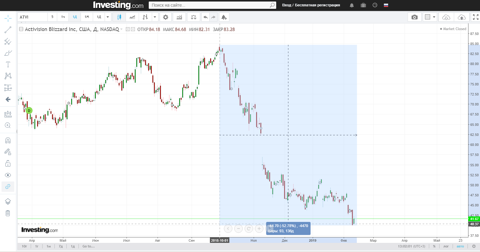В последнее время акции Activision Blizzard заметно падают, особенно после появления сообщений о том, что компания намерена провести сокращения в некоторых подразделениях корпорации, не оповещая об этом своих сотрудников.
