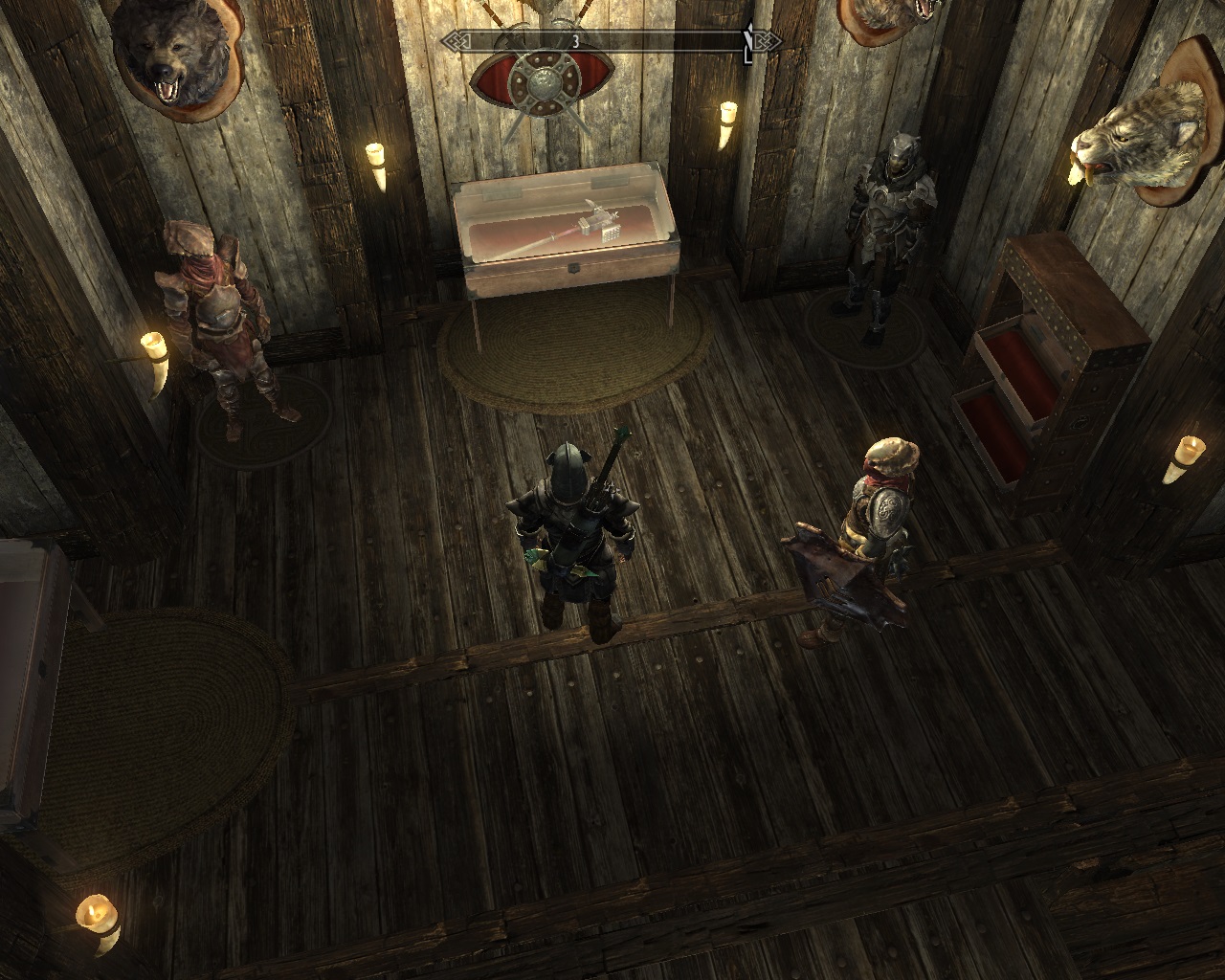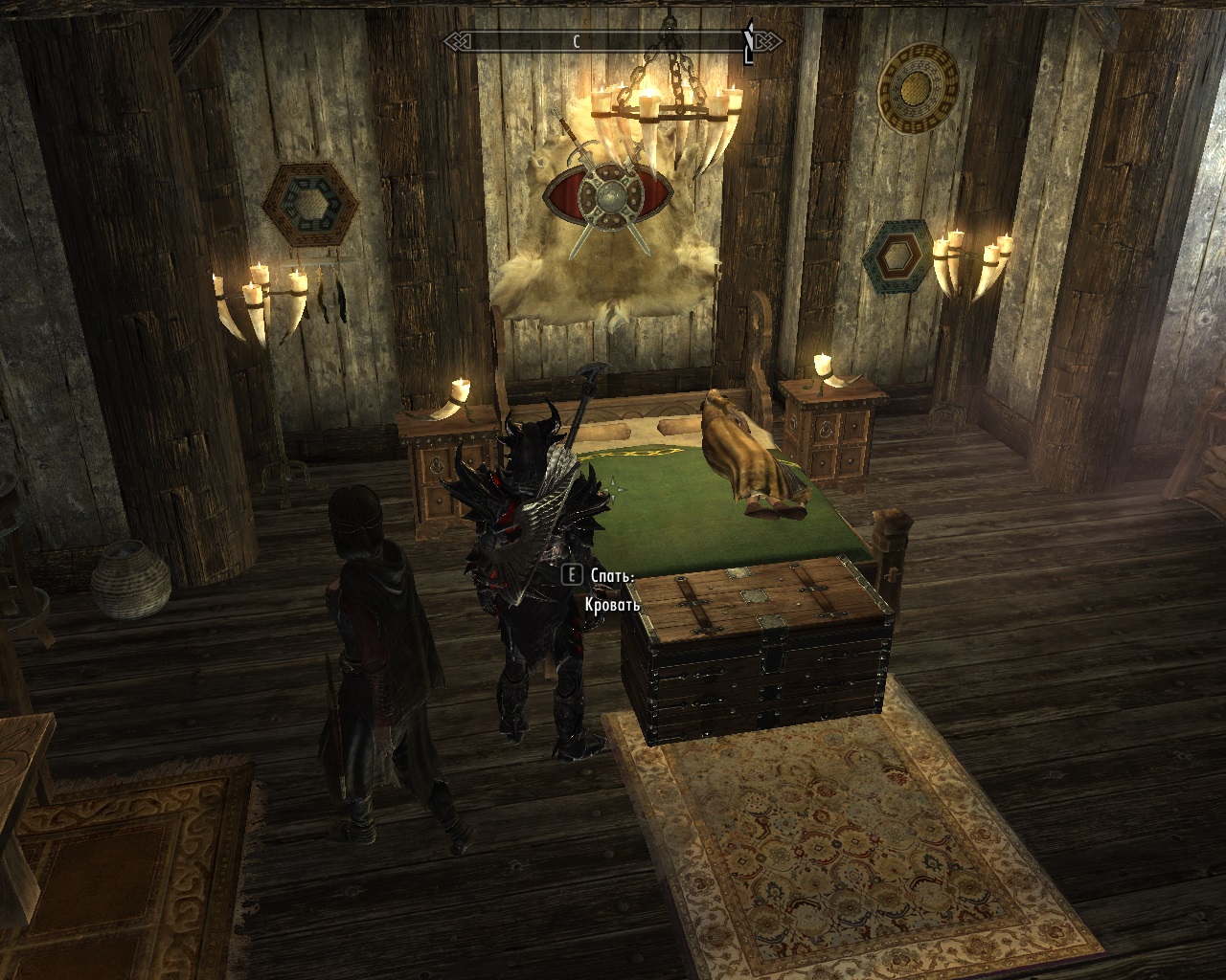 За время игры я приобрёл "Дом тёплых ветров" в Вайтране, а также "Хьерим" в Виндхельме после гражданской войны. Дом тёплых ветров радует близким расположением от ворот и наличие рядом аж двух торговцев. Там я и складывал всё добро. Хьерим это уже более гостевой, декоративный дом, где я красиво уложил редкое оружие и сделанные мною доспехи.