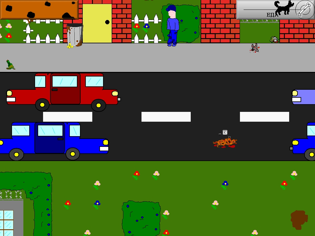 Соспавнился, поел, умер. Поссать на прохожих нельзя - зачем они вообще нужны? Пошел по сюжетке немного - пошёл откровенный бред. Идея игры чувствуется, и я бы попробовал её начать ещё пару раз, если бы не 800*600 фулскрин и не пустые заставки по 30 секунд.