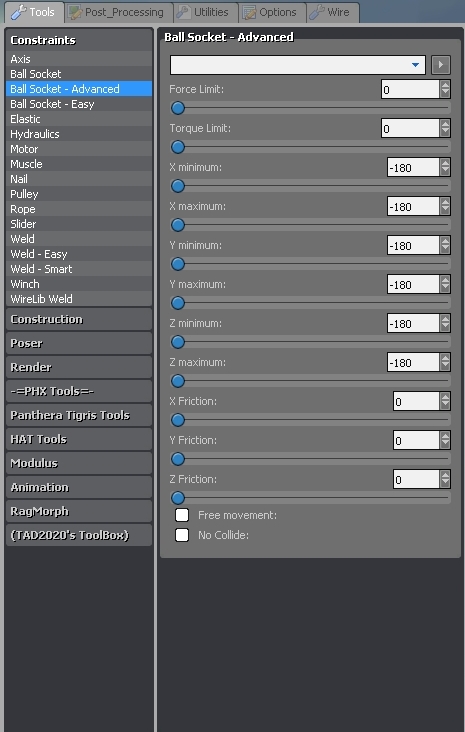 Обращаю внимание на то, что в инструменте Ball Socket Advanced имеются дополнительные поля настройки: