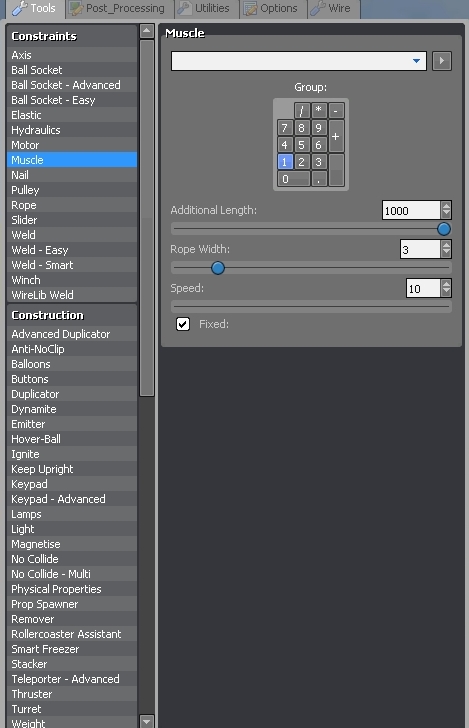 - Group - в этом параметре указывается клавиша, которой будет активироваться Muscle