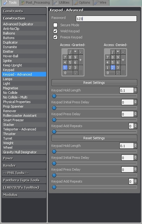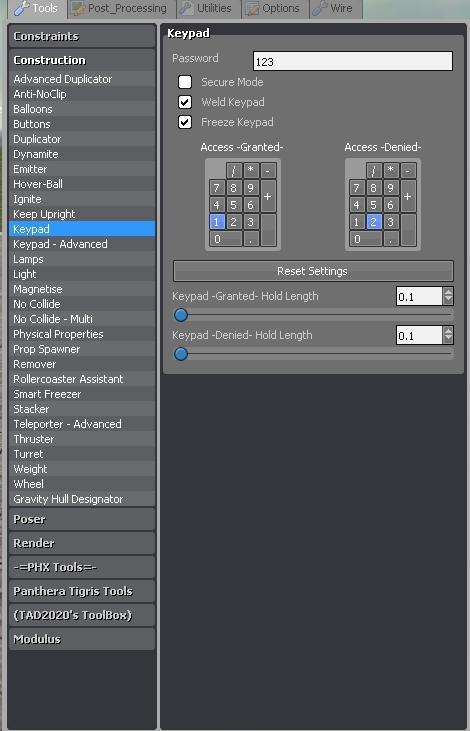 - при установленной галочке Secure mod - цифры на Keypad будут скрыты, вместо них будут звездочки, для того чтобы другие игроки не могли видеть что вы вводите на Keypad