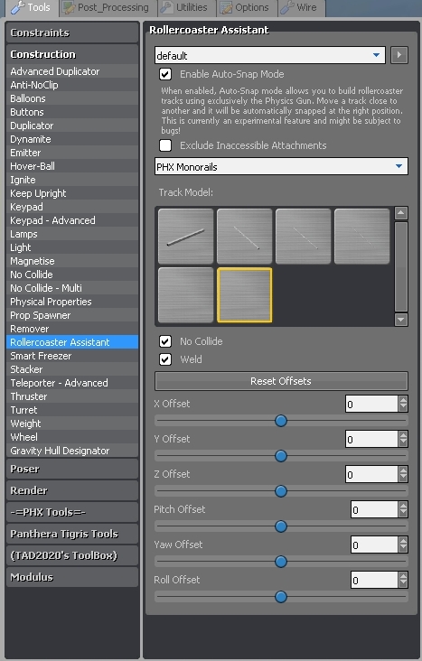 Rollercoaster Assistant - специальный инструмент для оказания помощи при работе с пропами для реализации "американских горок"