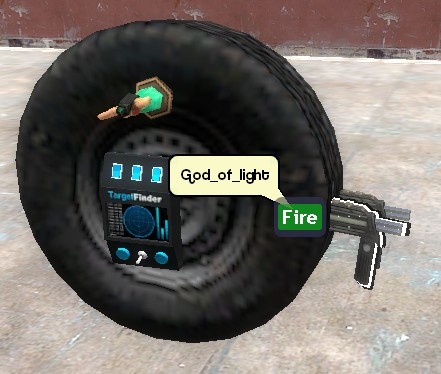 - Остается только подключить наши любимые Турели к этой системе. Для этого соединяем входы Fire у обеих турелей так же выходу 1 у Target Finder'а
