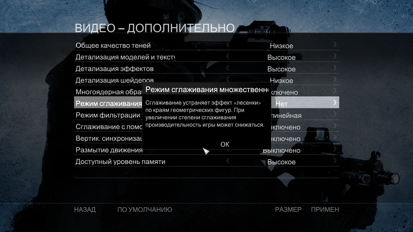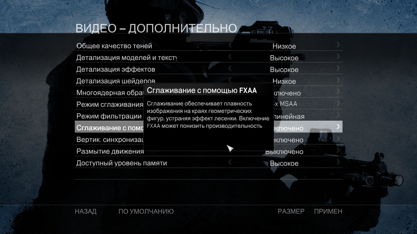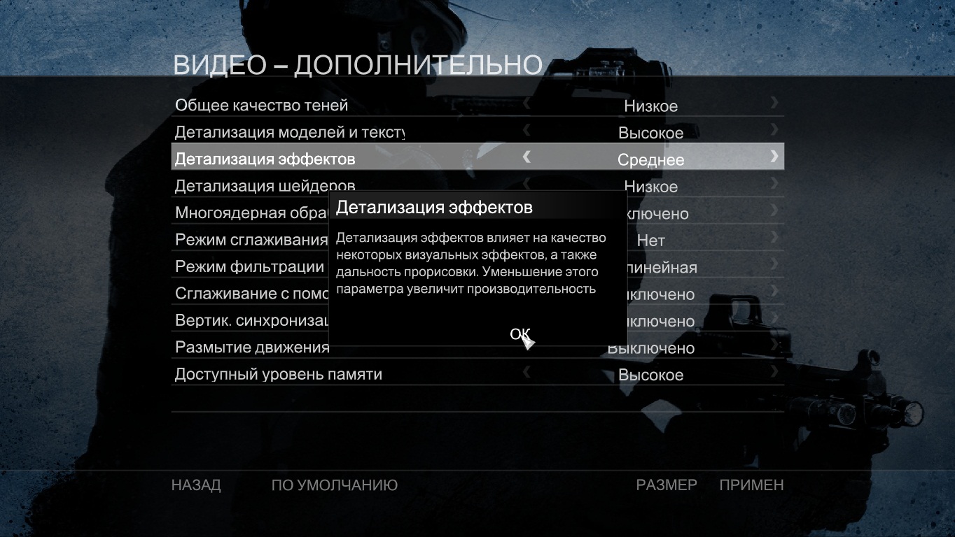 Справедливо решив, что этого мало, я нажал на "дополнительно" и приятно удивился. Обрадовало меня то, что тут настроек море, от степени детализации различных аспектов графики до выделения ядер процессора и оперативной памяти.