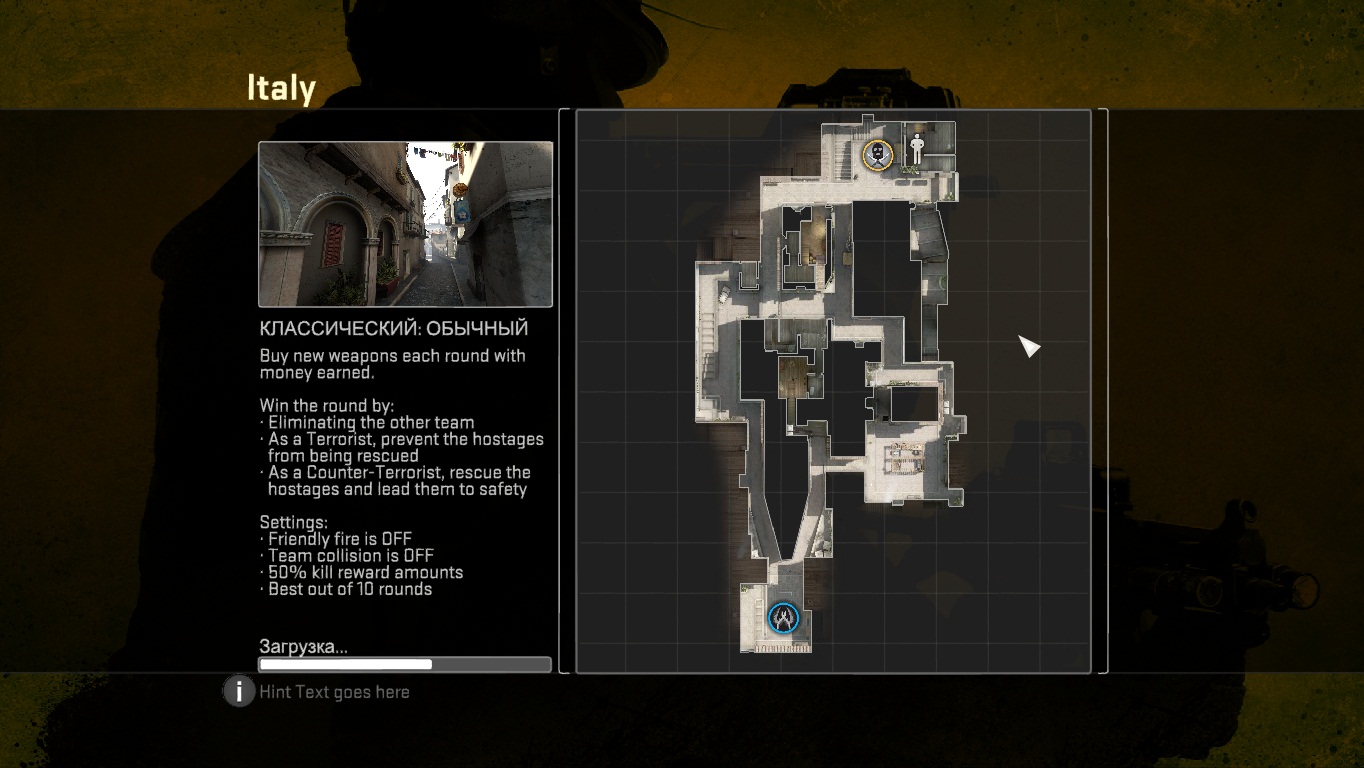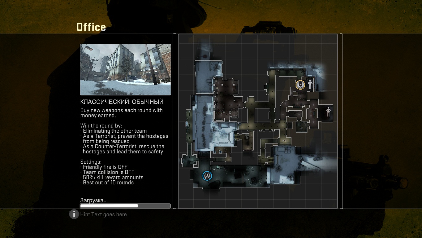 Наконец игра нашла мне матч, картой оказался "Nuke". Вообще мне показалось, что намного популярнее сейчас карты не на спасение заложников, а на разминирование бомбы, но, возможно, мне просто попадались такие сервера.