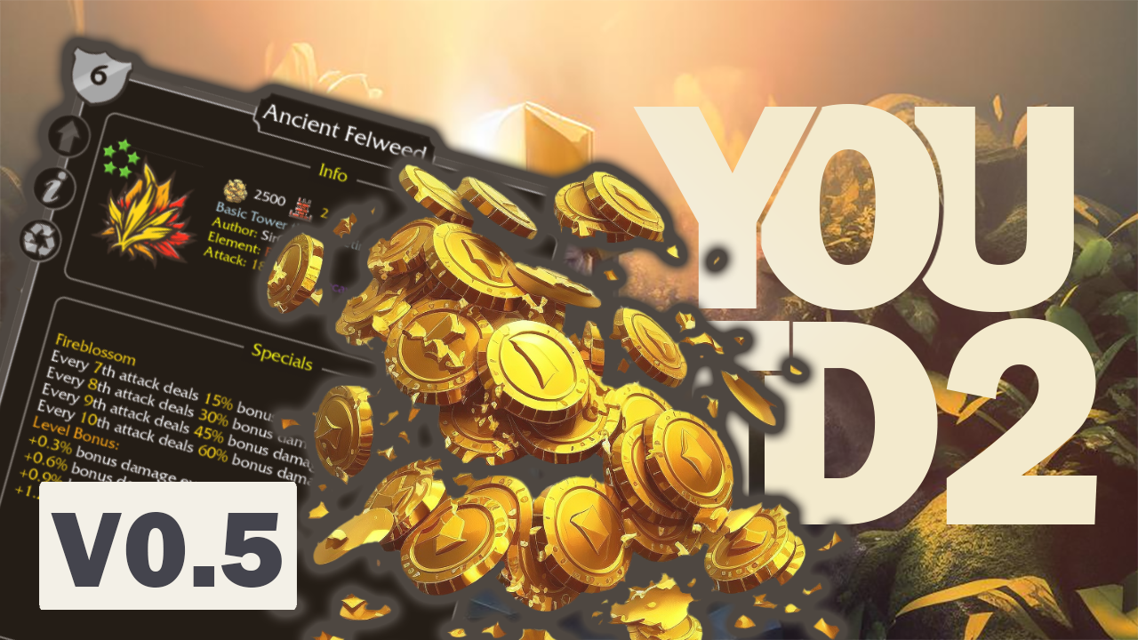 В версии 0.5 была проведена огромная работа над балансом и экономикой игры. YouTD 2 все больше походит на оригинал в плане геймплея и уже может играться одним игроком со стандартными башнями. Не смотря на то, что некоторых элементов еще не хватает (строителей, режима апгрейда, хорадрик куба), можно вполне себе почувствовать ностальгию старой карты.