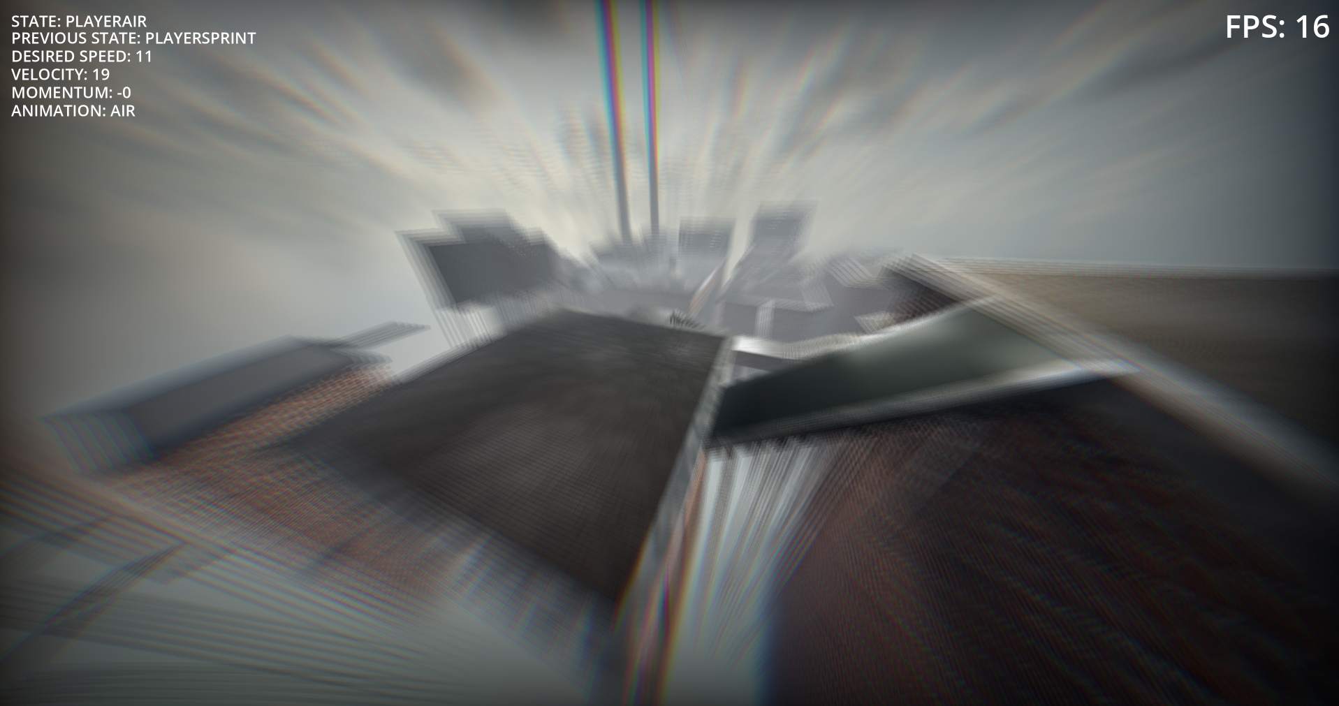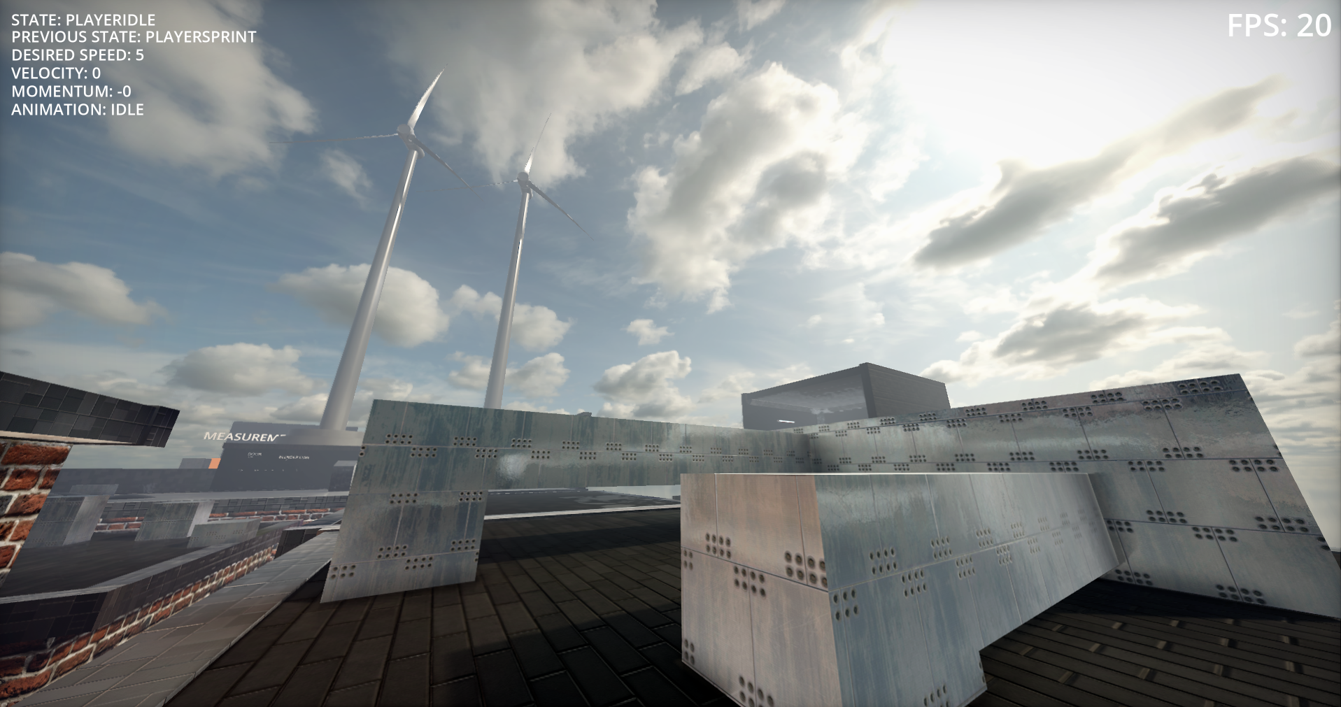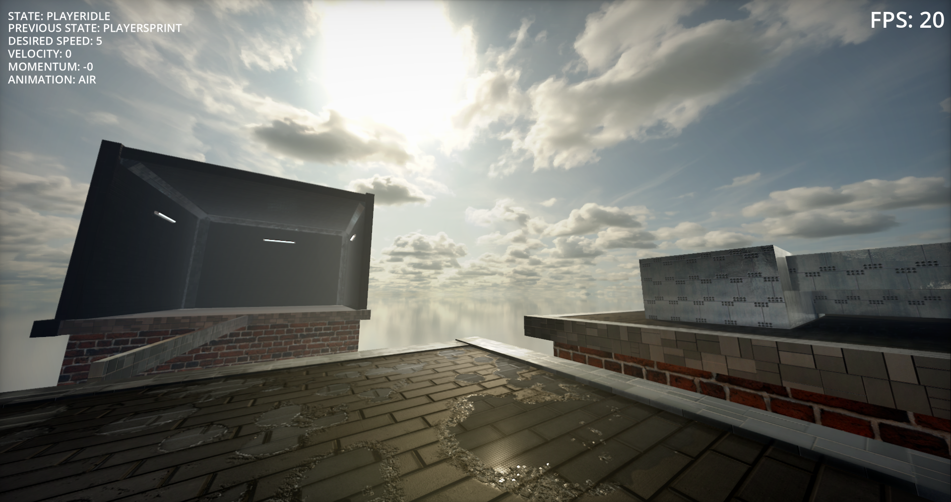 Наработка с реализацией управления 3D-персонажем с видом от первого лица. Затачивалась под экш-игру с паркуром. Имеется тестовый уровень для тестирования.