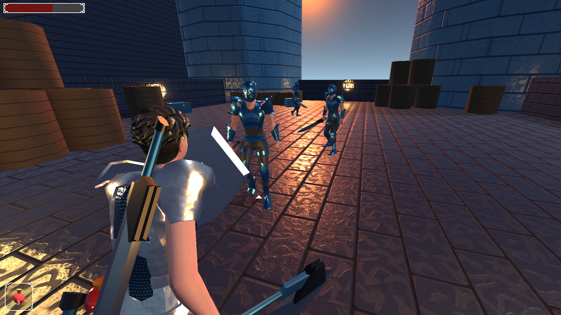 управление персонажем; комбинированные удары мечем и блок щитом; метательные бомбы, используемые предметы; наведение камеры на конкретную цель; уклонение кувырком; бег; использование лестниц; взаимодействие с окружающими объектами (двери, сундуки); базовый ИИ противников; смерть врагов с использованием ragdoll-анимации;