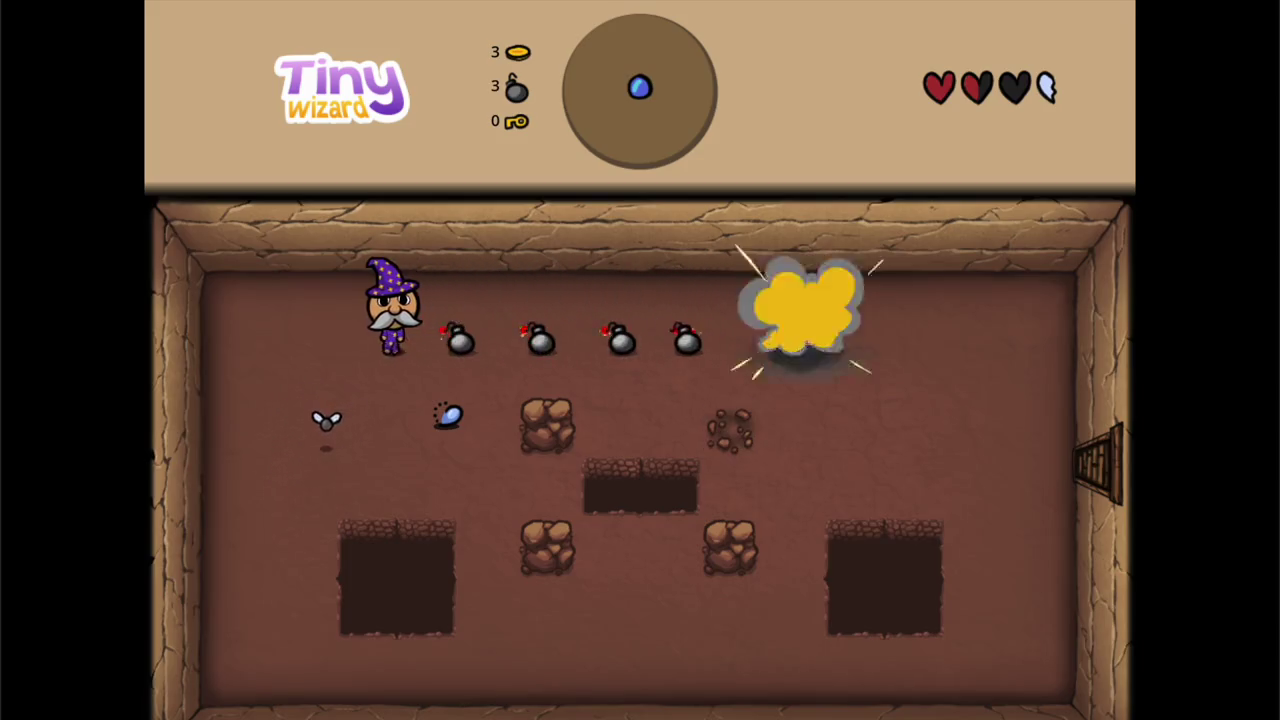 управление персонажем; соединенные комнаты, которые легко расширять; подбор предметов; отображение содержимого инвентаря; бомбы взрывают камни и откидывают другие бомбы;