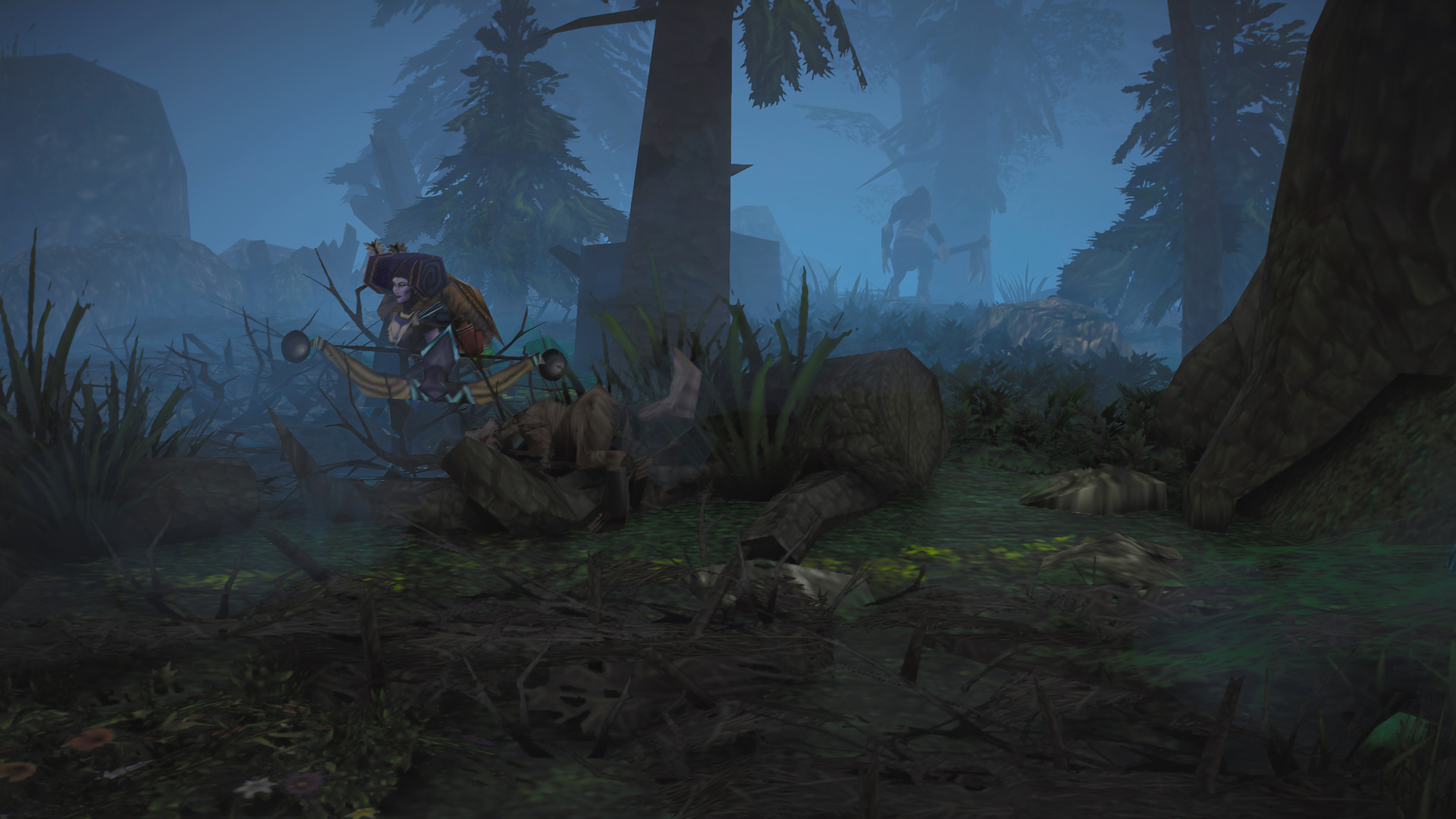 Проклятые земли — гниющие раны в сердце леса. Нежить роится повсюду, а кости на земле выдают каждый шаг, привлекая монстров. Проклятые тотемы вызывают страх, а зловещий туман искажает реальность, погружая в галлюцинации. Миникарта здесь не работает, а естественная регенерация полностью отключена. Выживание требует предельной осторожности: уничтожать тотемы, избегать темных частиц на земле и двигаться так, чтобы не потревожить мертвых