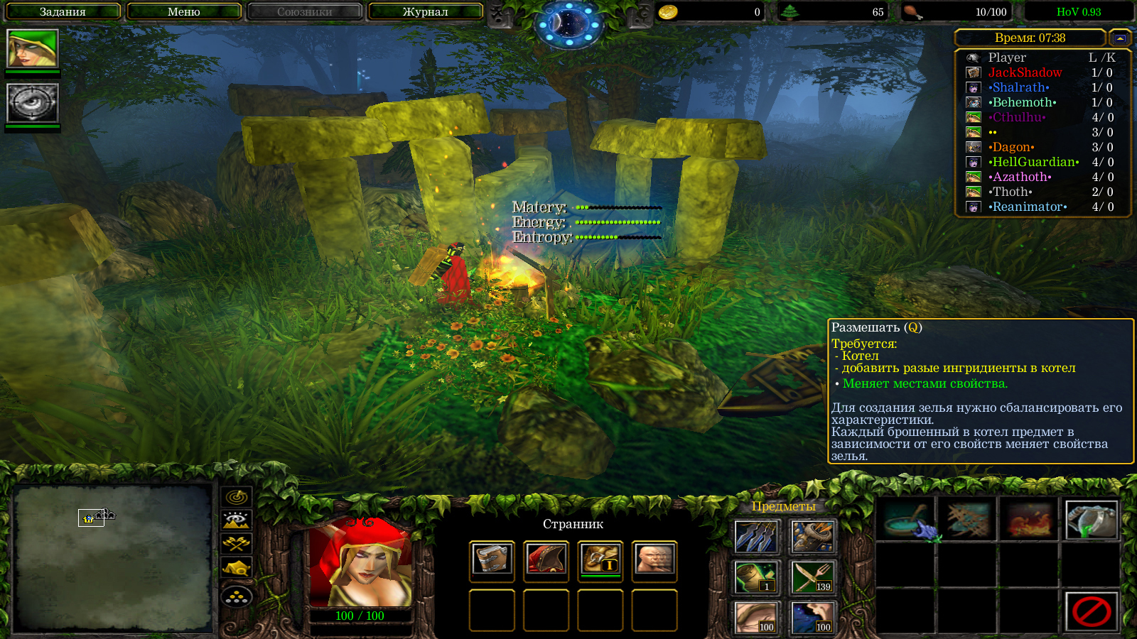 Зелья можно готовить двумя способами. Первый — простое смешивание компонентов без дополнительных требований. Второй — работа на котле, где важно балансировать свойства ингредиентов по трём параметрам: Хаосу, Энергии и Энтропии. Для работы с котлом требуется специальный предмет.